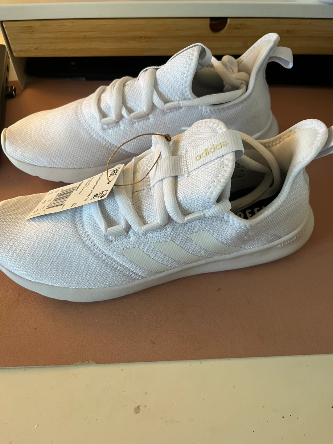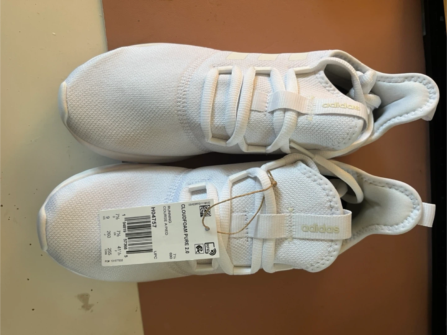 77Selling a brand new pair of Adidas Cloudfoam Pure 2.0 running shoes in white! They are a women's size 9. Super comfy and stylish for everyday wear or hitting the gym