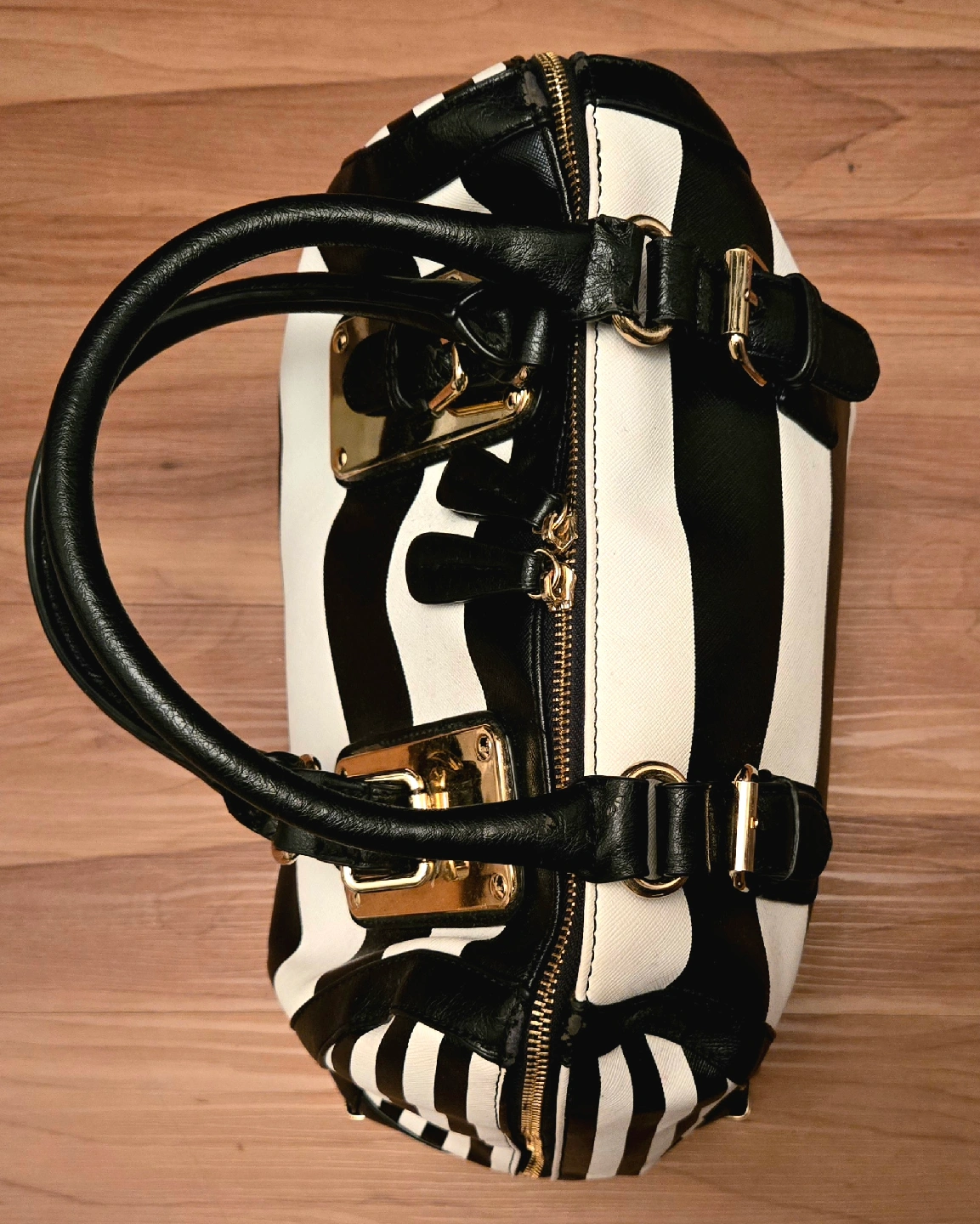 Selling a brand new Aldo, stylish leather satchel bag with a bold black and white striped pattern! It features gold-tone hardware and a spacious interior. Great for adding a chic touch to any outfit. I never ended up using it so it's time to sell it as I declutter my family's home.