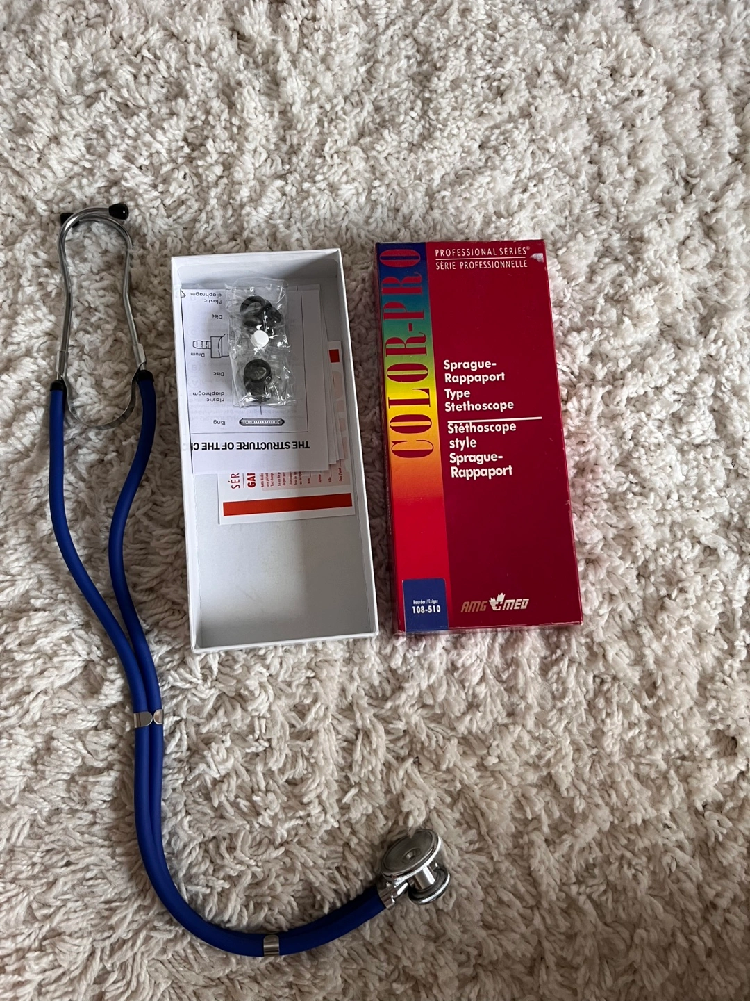 Selling a brand new AMC Med Sprague-Rappaport type stethoscope! It's still in the box and has all the original components included. The box includes instructions as well