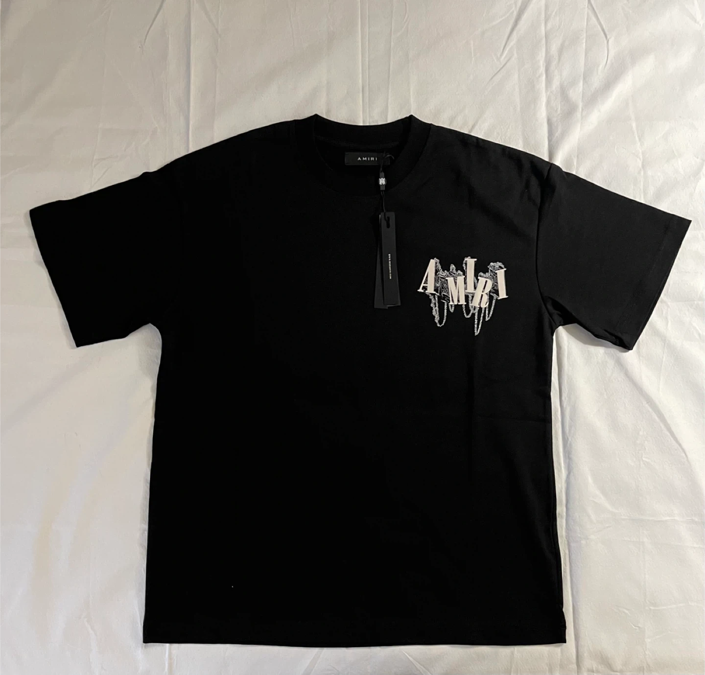 20This is a brand new Amiri t-shirt, never worn and still in its original packaging! It's a size medium and comes in black. The shirt features the Amiri logo on the front and back. Perfect for adding a touch of designer style to your wardrobe
