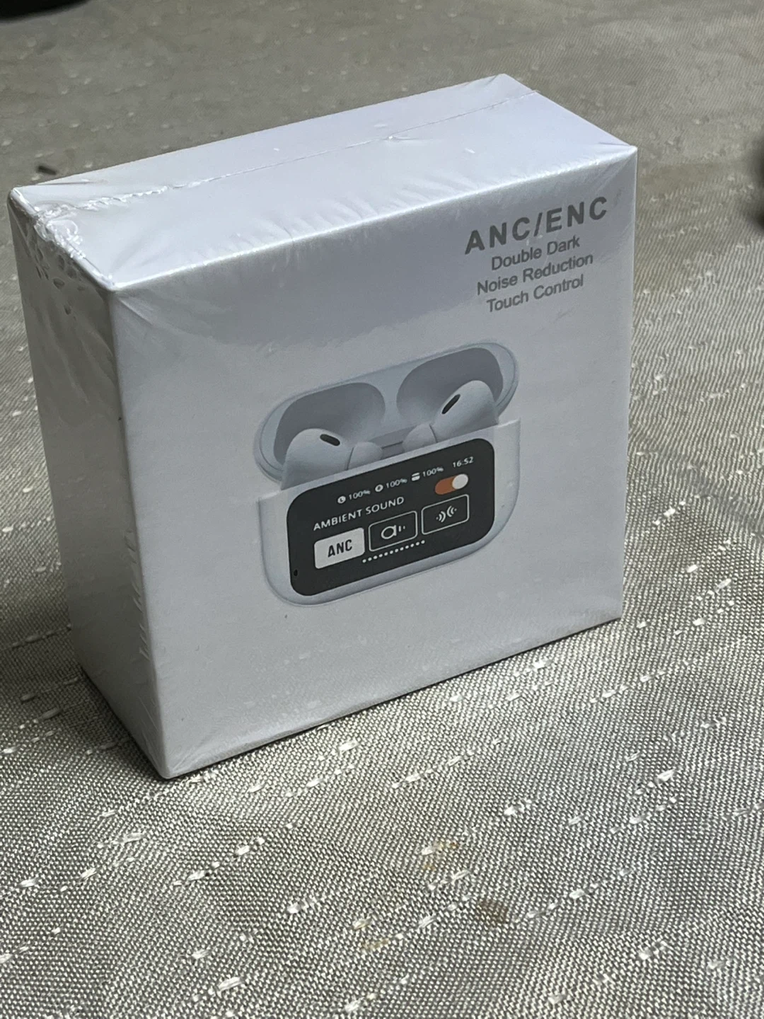 Selling a brand new set of ANC/ENC Double Dark Noise Reduction Touch Control earbuds! These earbuds feature ambient sound mode and come with a USB charging cable and additional ear tips. Box is included!