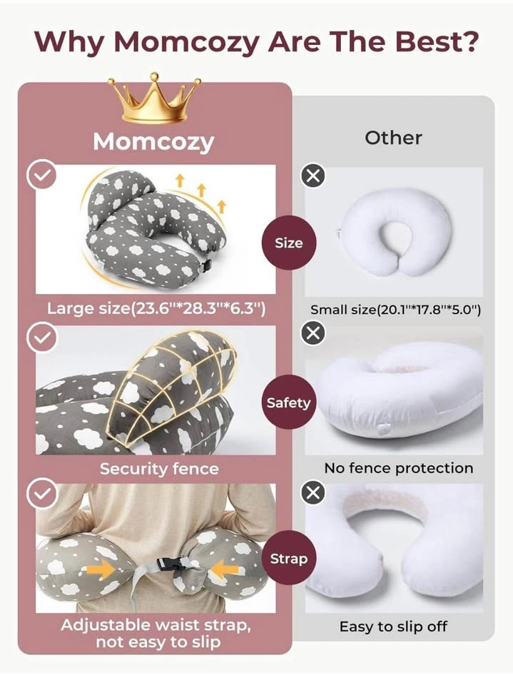 110Original Design, Great Support for Mom and Baby: Our nursing pillow for breastfeeding and bottle-feeding encourages better posture during nursing, take pressure off your shoulders and neck. Make every moms' breastfeeding life so much easier and happier. No more pain and sore arms Large size for All Around Support: Through the feedback of many customers, we have widened the sides of nursing pillow to provide more comprehensive arms support for moms. Size: 23.6''(L)*28''(W)*6.3''(H). The perfect mix of soft and firm With adjustable waist strap, it is fit most size, it help this pillow hugs your body securely and stays in ideal position, eliminates the gap between you & baby. Design with a security fence, keeps baby from rolling away during breastfeeding or nursing Multipurpose & Free Your Hand: Free mom's one hand and save time to handle multi-tasks or just enjoy their leisure time while nursing or bottle-feeding. Our pillow can accompany baby to grow, Feeding (0+ months), propping (3+ months), tummy time (6+ months) and sitting (9+ months).Not for sleeping, use while awake under adult-supervision Nursery Must-have: This nursing pillow is a registry must-have, making it the perfect gift for any baby shower. With this pillow, our moms no longer to bend and can easier breastfeeding with a straight back. Also, It help family members who need some assistance to hold baby safely. And warm tips--Since the pillow packaged is vacuum for transport, please pat the pillow and let it expand for at least 48 hours to make it fluffy enough before using Pick up - Courtice Please check my other listings.