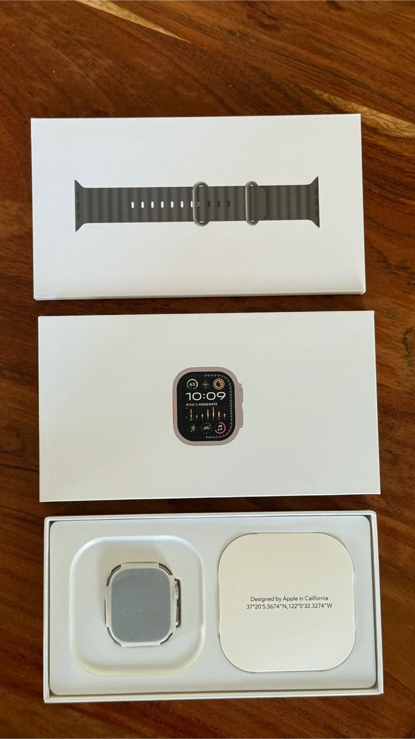 21Selling a brand new Apple Watch Ultra 2, 49mm Titanium Black with Black Ocean strap. It comes with the original box and all included components. Model number is MX4P3LW/A.