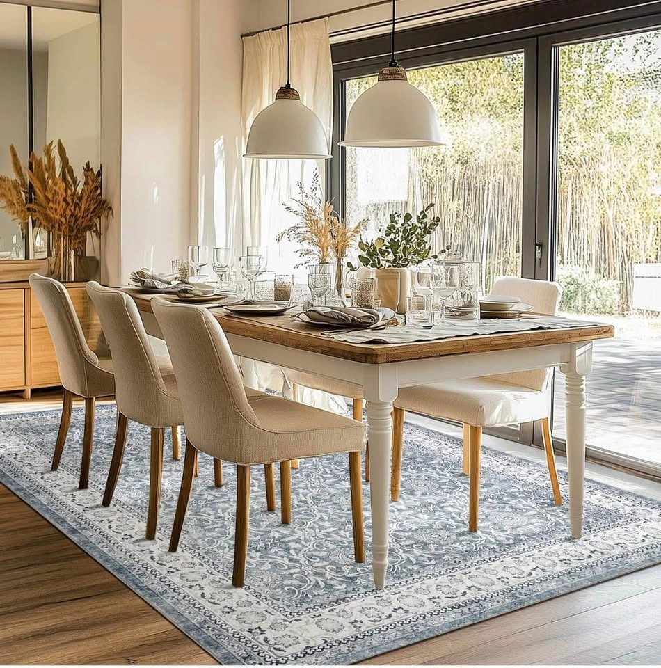 New and sealed area rug, machine washable, size 8x10, in teal/light blue. Made from durable and soft materials with a non-slip backing. Creases will disappear within a week. Dust and dirt can be easily removed. Clean spills immediately by blotting with a clean sponge or cloth. Hand wash or vacuum regularly. Pick up - Courtice. Please check my other listings!