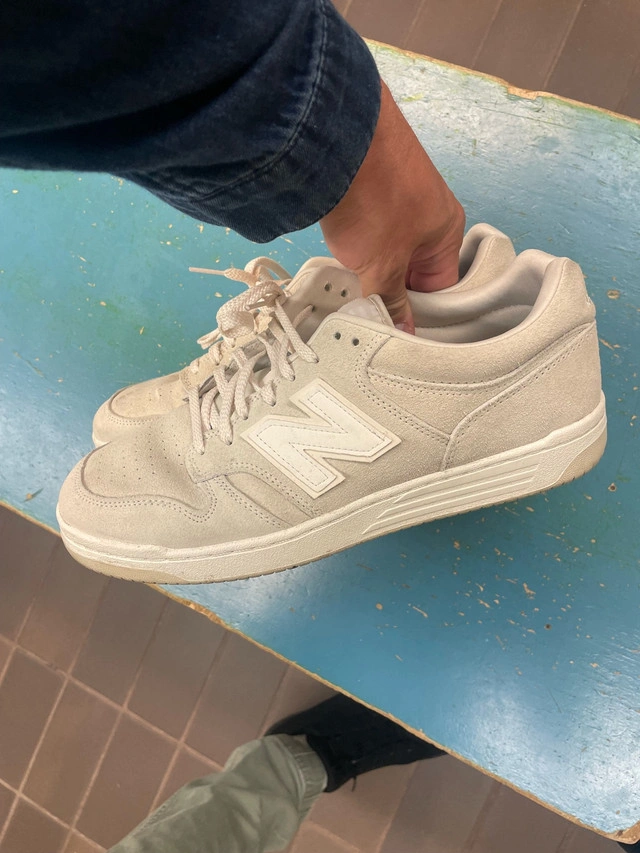 I'm selling a pair of used New Balance 480 sneakers in a versatile, neutral colour, perfect for everyday wear. Additional details: * Brand: New Balance * Model: 480 * Style: Sneaker * Colour: Neutral * Condition: Worn maybe 4 times If the ad is still up, then yes, the item is still available! Feel free to send a message to arrange a meet up time to pick these sneakers up!