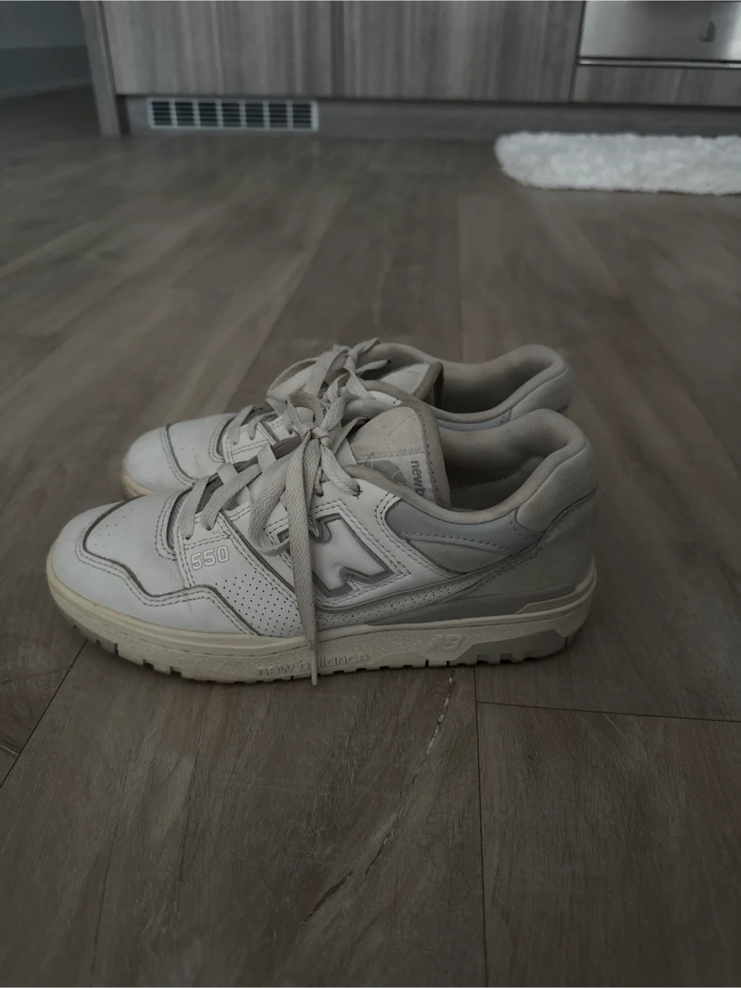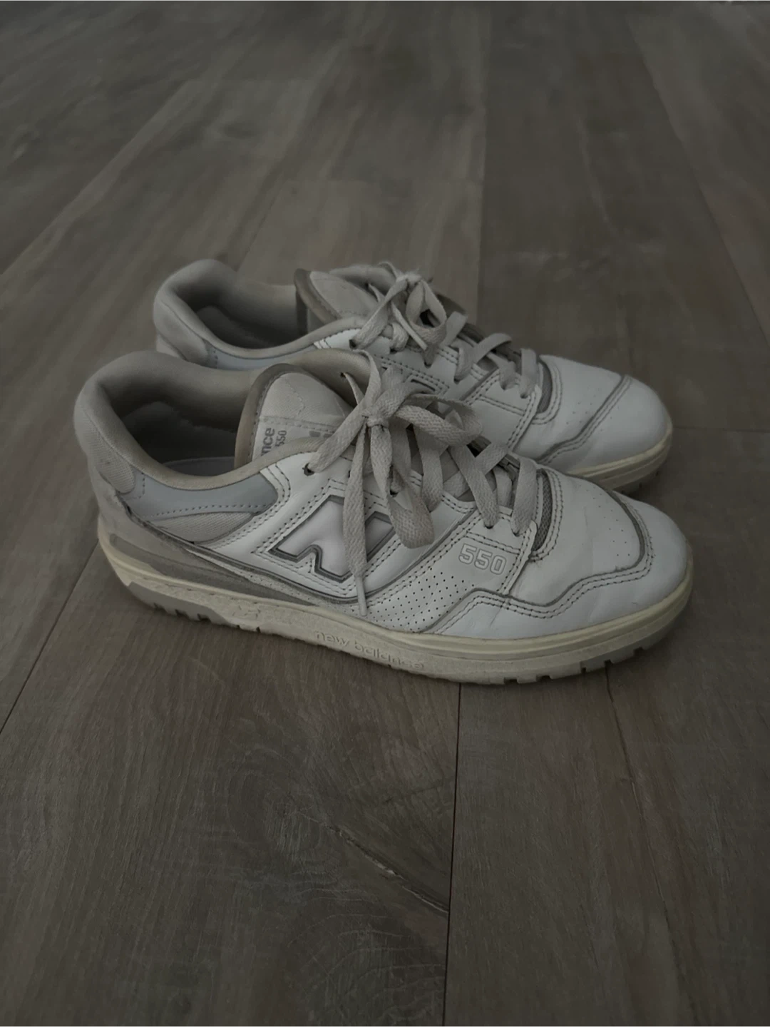 119Selling a pair of New Balance 550 sneakers in white and grey. They are in good condition and the size is US 8.