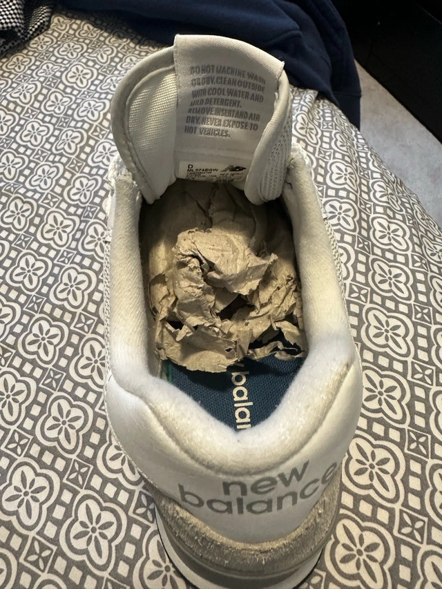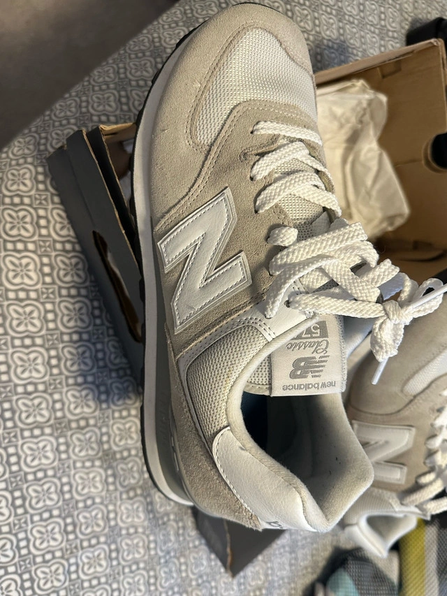65Step out in style with these New Balance 574 Classic sneakers, perfect for adding a touch of retro flair to your everyday look. These stylish and comfortable shoes are a size 9.5 and have a grey suede and mesh upper, providing both durability and breathability for all-day wear. These are in good condition, with only minor signs of wear. Key Features: * Brand: New Balance * Model: 574 Classic (ML574EGW) * Size: Men's US 9.5 * Colour: Grey/White * Material: Suede and mesh upper with a rubber sole * Condition: Used, Good Condition Just a heads-up, if the ad's still up, the shoes are still available.