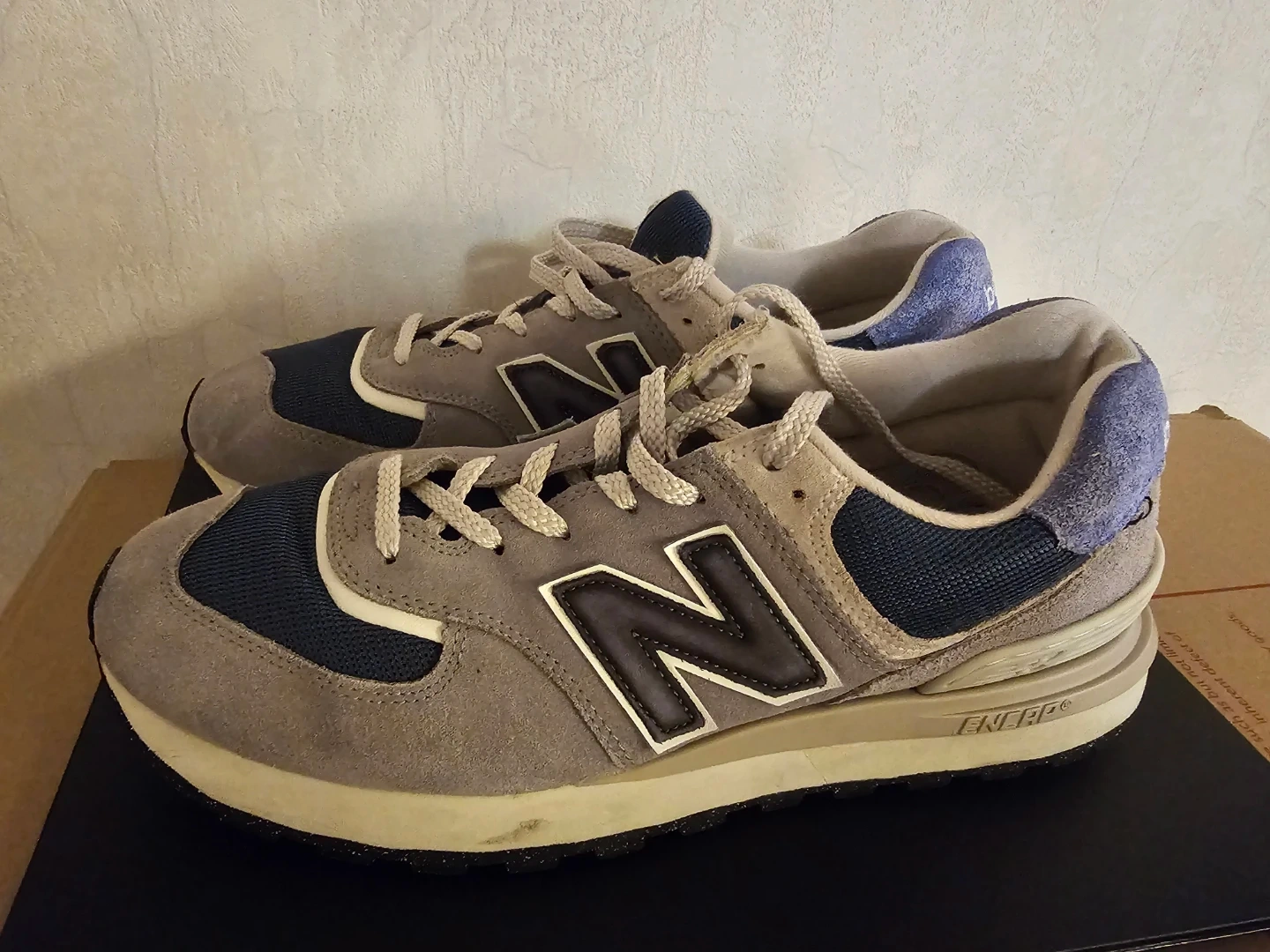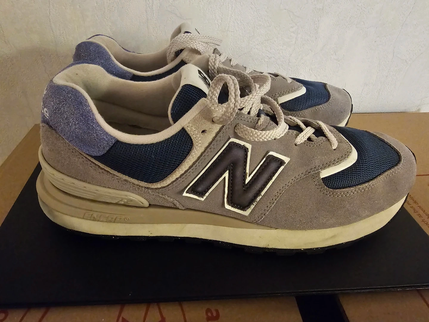 73Selling a pair of New Balance 574 shoes in a grey and navy colourway! They're in good condition and ready for a new home! These are a classic and comfortable shoe for everyday wear!