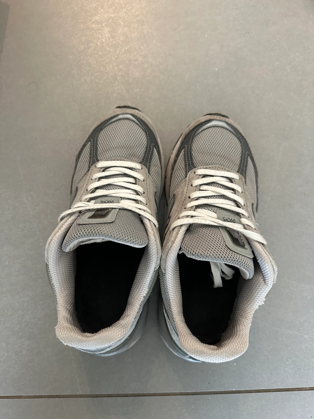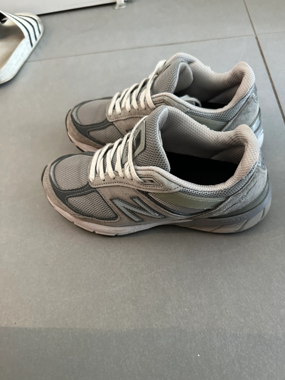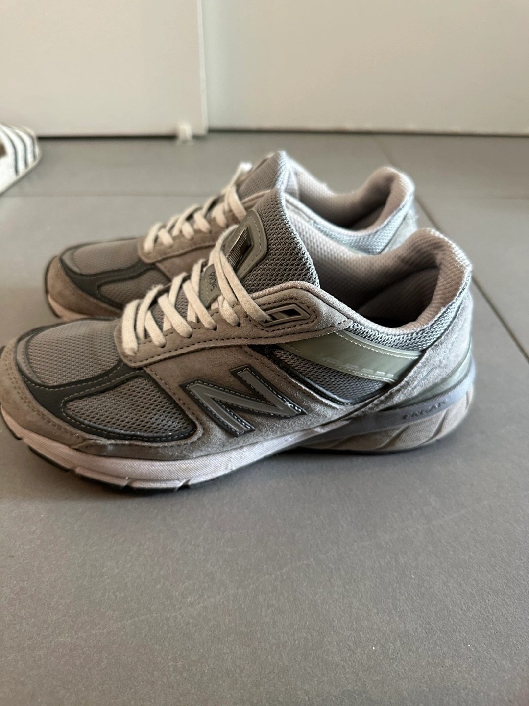 Selling a pair of New Balance 990v5 sneakers in grey. They're in good condition and ready for a new home!