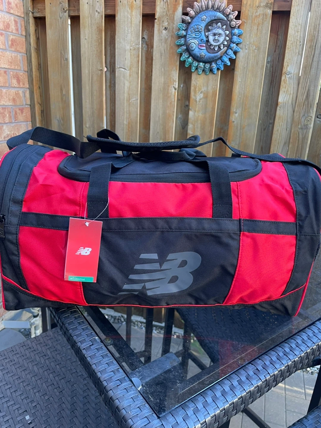 I'm selling a brand new with tags New Balance duffle bag! It's red and black, perfect for the gym or travel