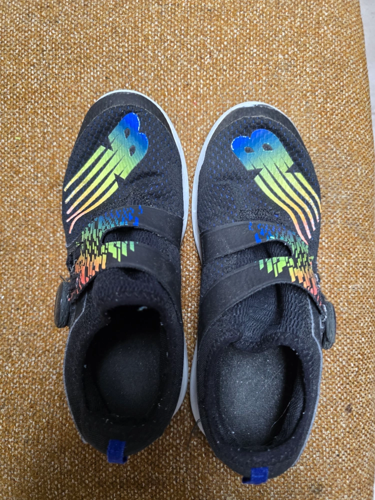 Selling a pair of New Balance kids' sneakers in size 3 US. They feature a black design with colourful accents and a convenient strap. Perfect for active little ones! Steeles and yonge