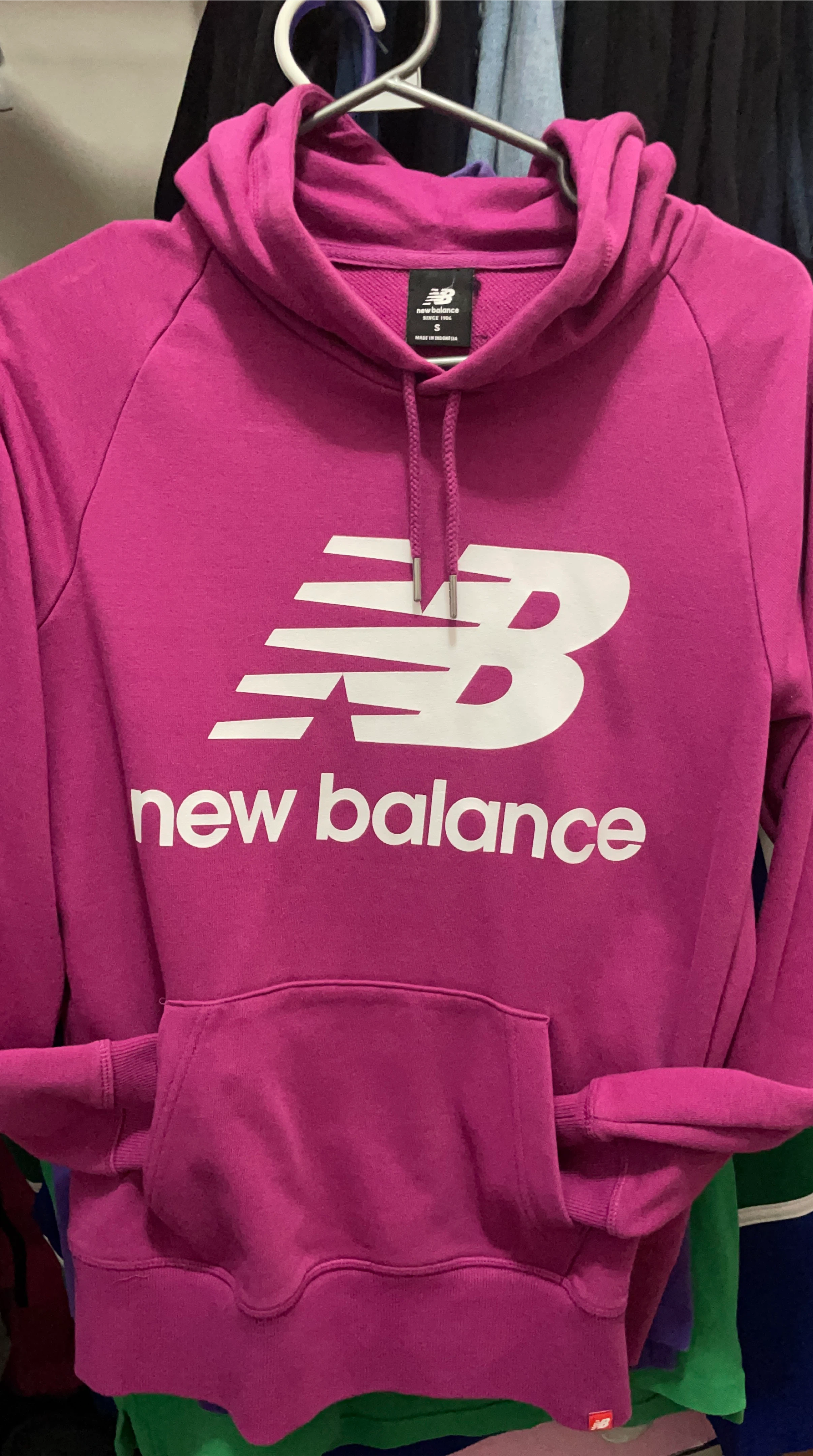 Selling a New Balance hoodie in pink! It's a size small and has the classic New Balance logo on the front. Perfect for staying cozy on cooler days