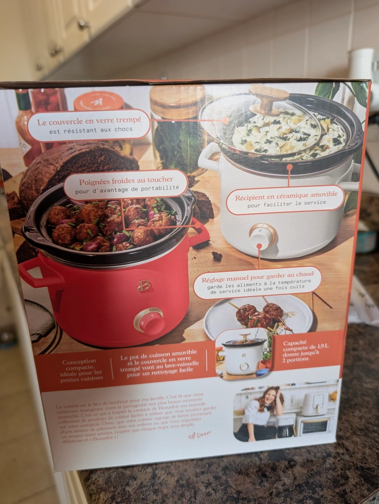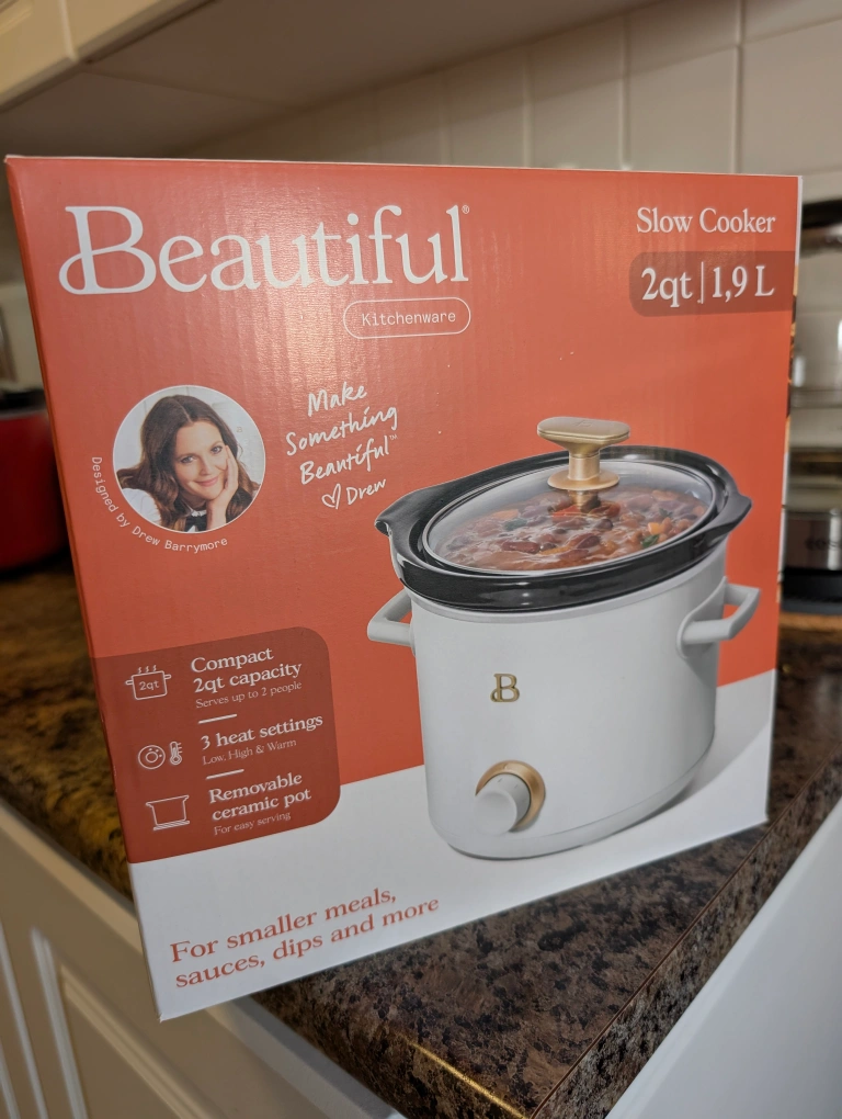 Brand new in the original box, never been opened or used. Beautiful Kitchenware slow cooker for sale! It's a 2qt capacity, perfect for smaller meals, sauces, and dips. It has 3 heat settings: low, high, and warm. The ceramic pot is removable for easy serving, and the tempered glass lid is shock-resistant. Pick up only - cash only