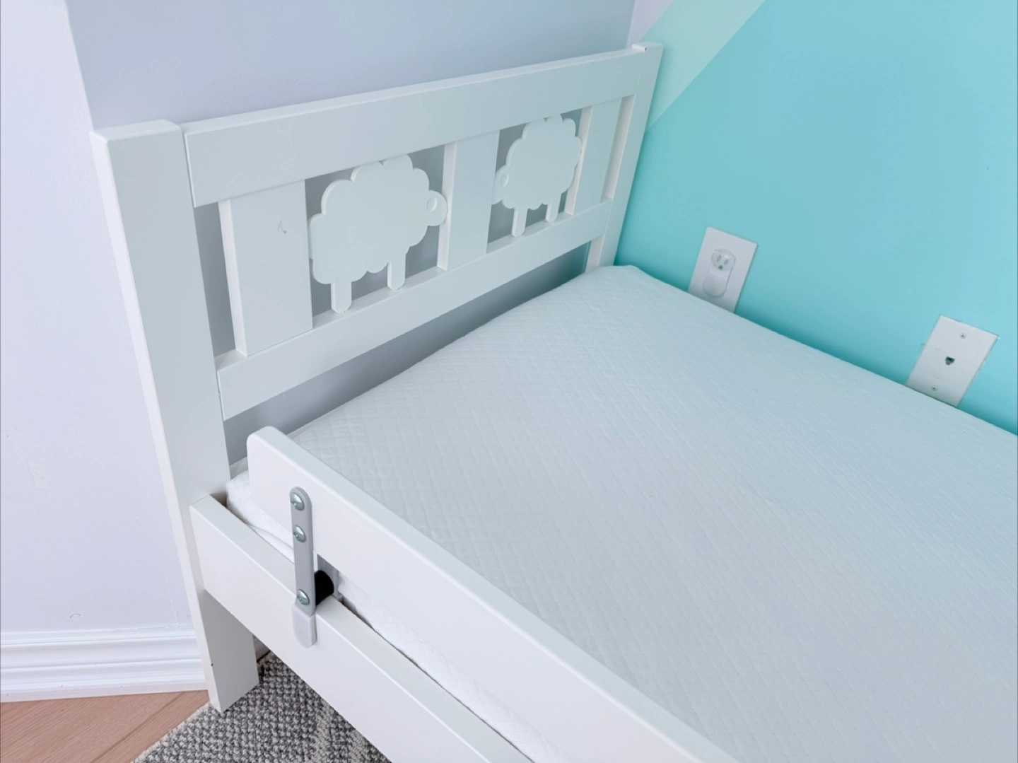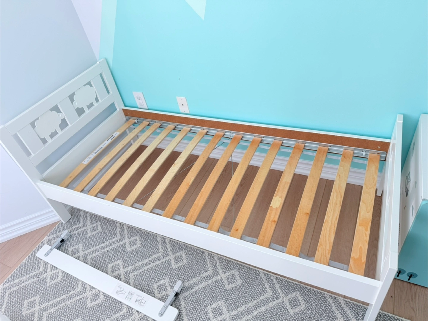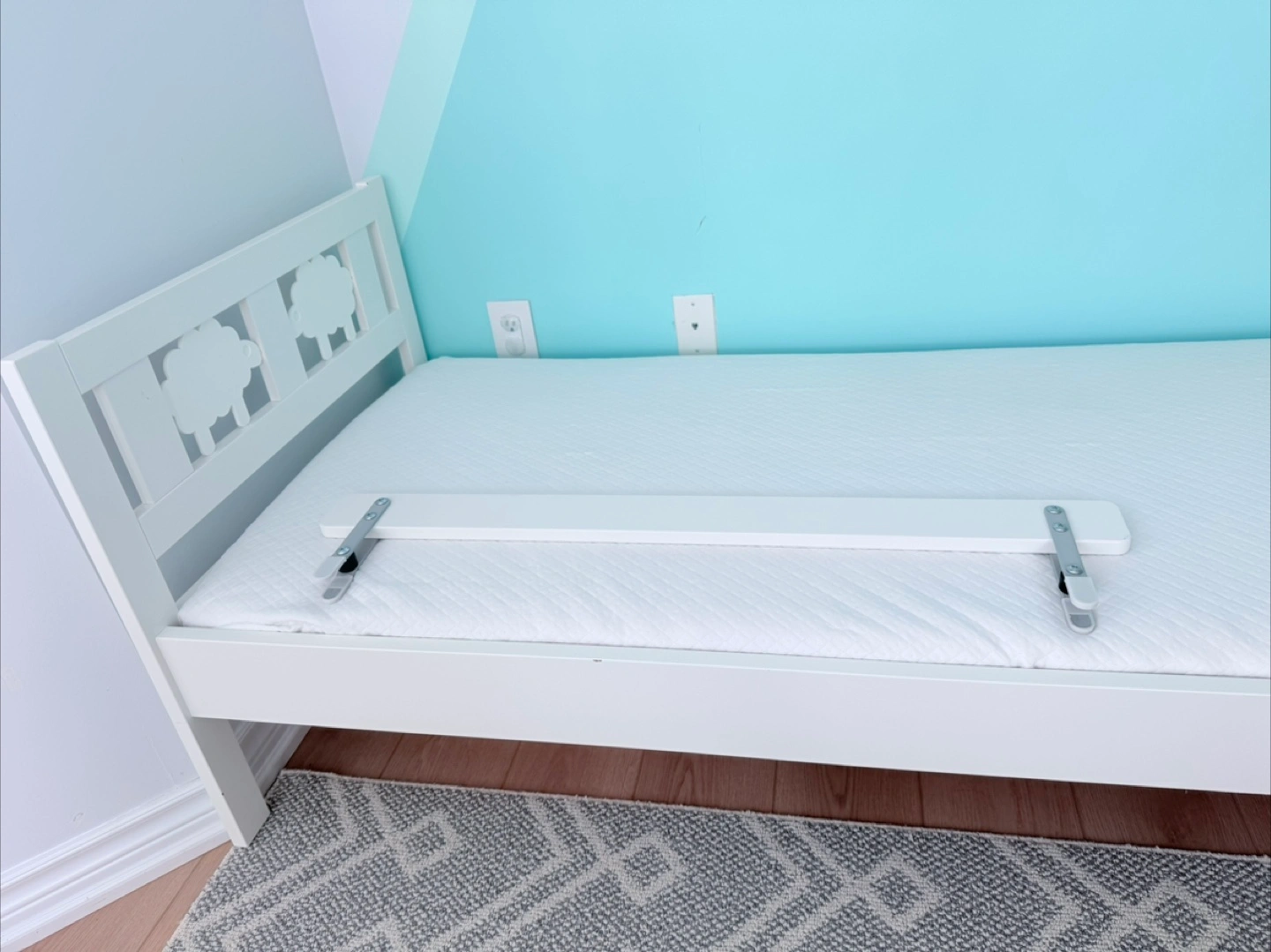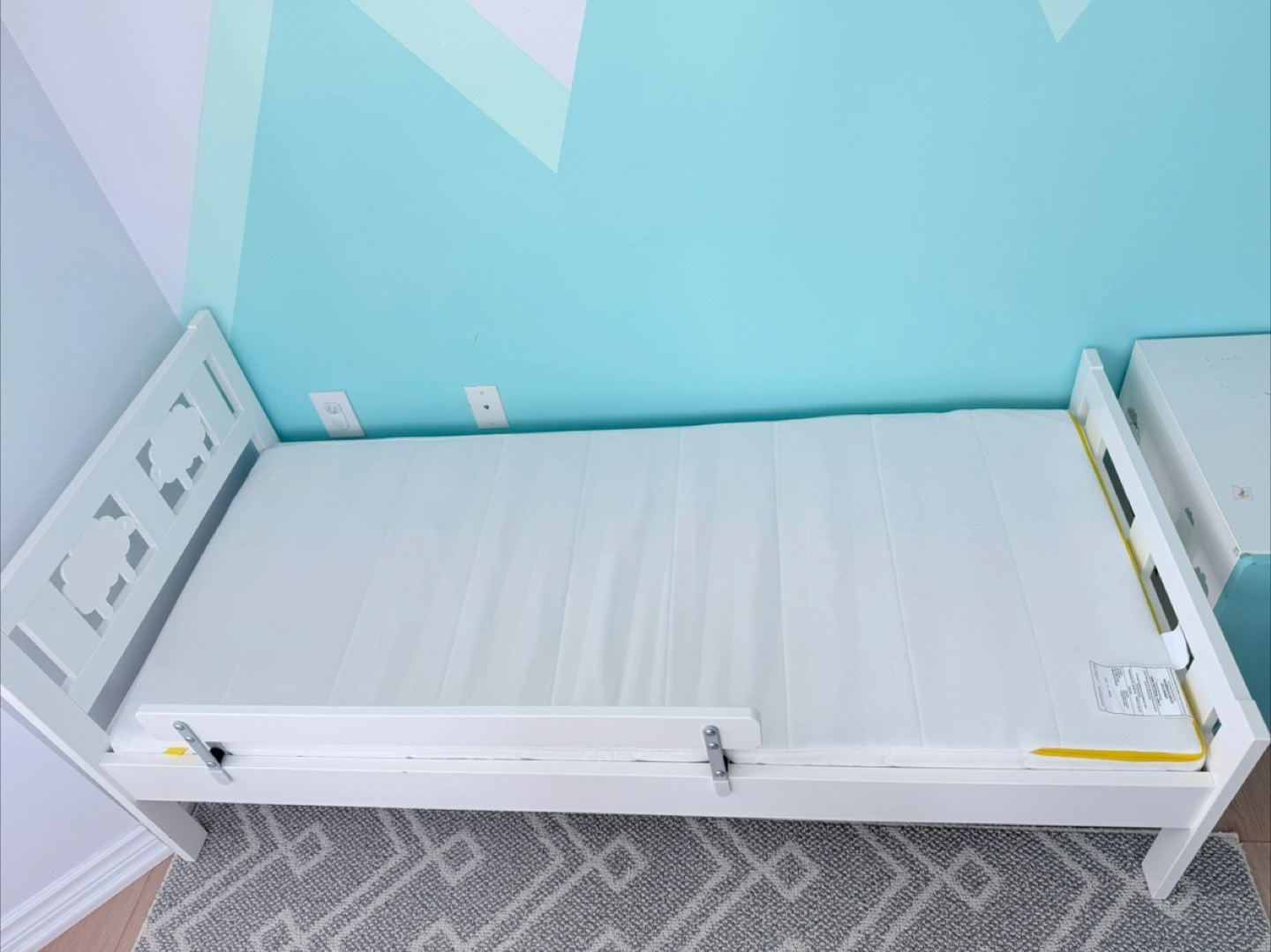 New IKEA Bed for Kids Assembled but never slept in. Includes never slept in IKEA mattress designed for this bed KRITTER bed frame with slatted bed base for good air circulation, white, 70x160 cm (27 1/2x63 ") Let the sheep guard your little kid’s dreams while the removable guardrail prevents them from falling out of the bed Velue: $300 + Tax