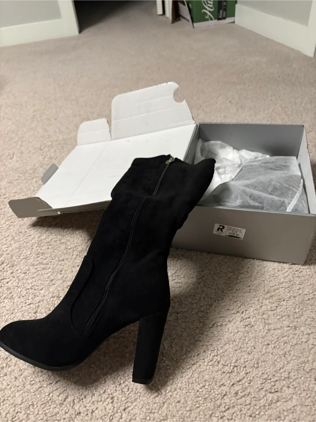 Selling a pair of New Bella knee-high boots in black suede. They are a size 8 and come with the original box. These boots are in great condition and ready for a new home! The original price tag on the box shows $169.00