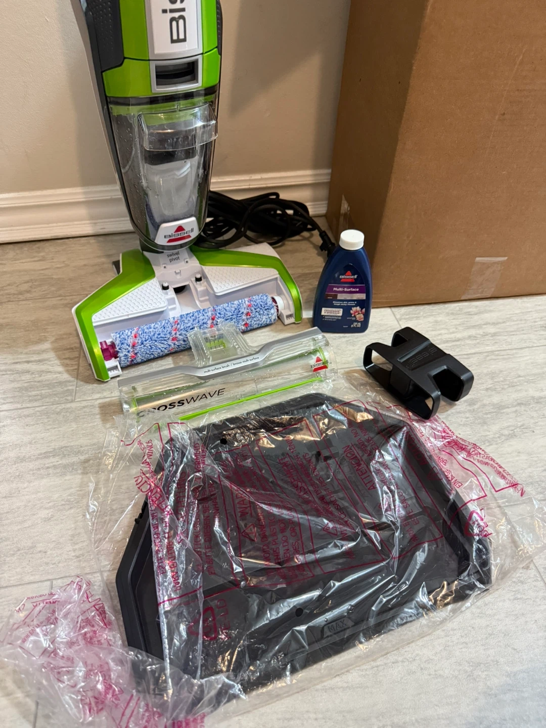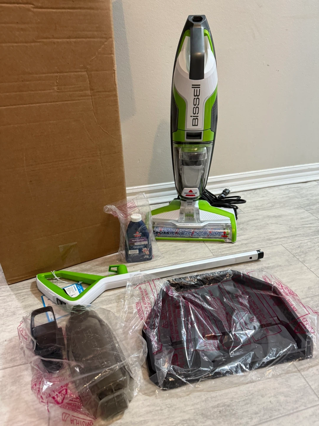 NEW Bissell CrossWave Multi-Surface Vacuum Mop Description: New in box, was just tested and works as new, works on carpet and hardwood and it cleans, mops, and vacuums for multi-surface use! Key Features: Dual Action Brush Roll 25 ft. Cord Multi-Surface cleaning Two-Tank Technology Vacuum & Wash at the Same Time Price: $200 Local Pickup in Westmount Delivery & Shipping Available — CLSBS818