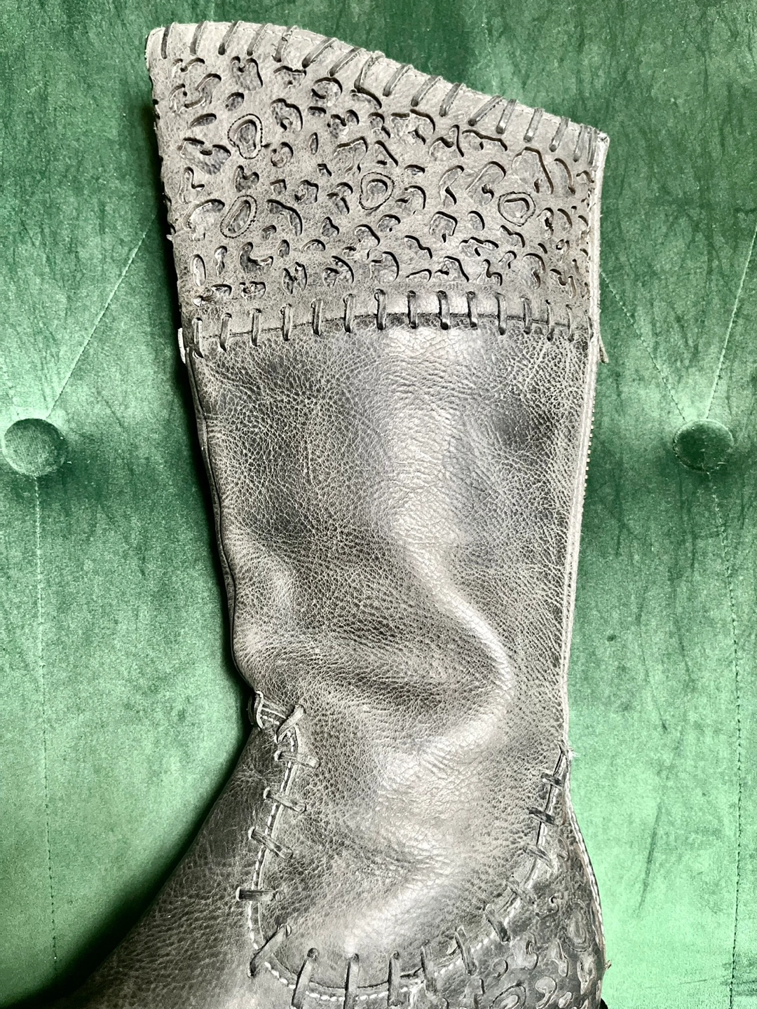 221BUCKLE CORRAL BOOTS (Design by: Indie Spirit) Grey leather boots Size 7 Features unique top detailing and thick back side zipper Genuine leather (Original price over $200)