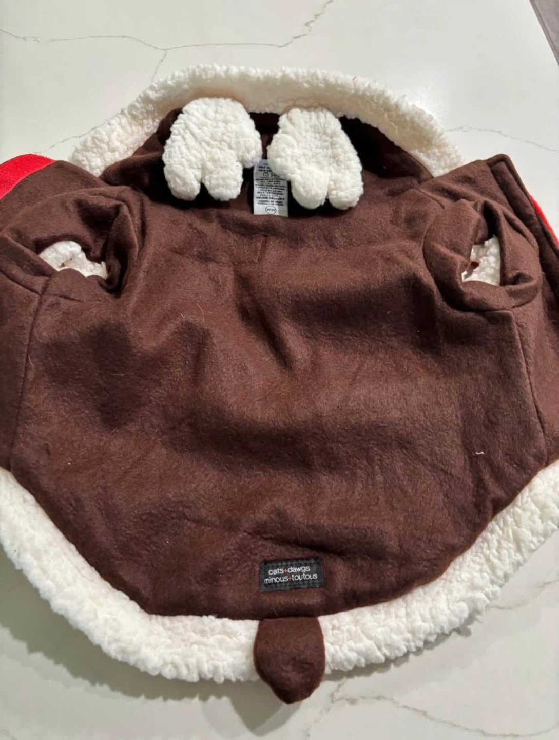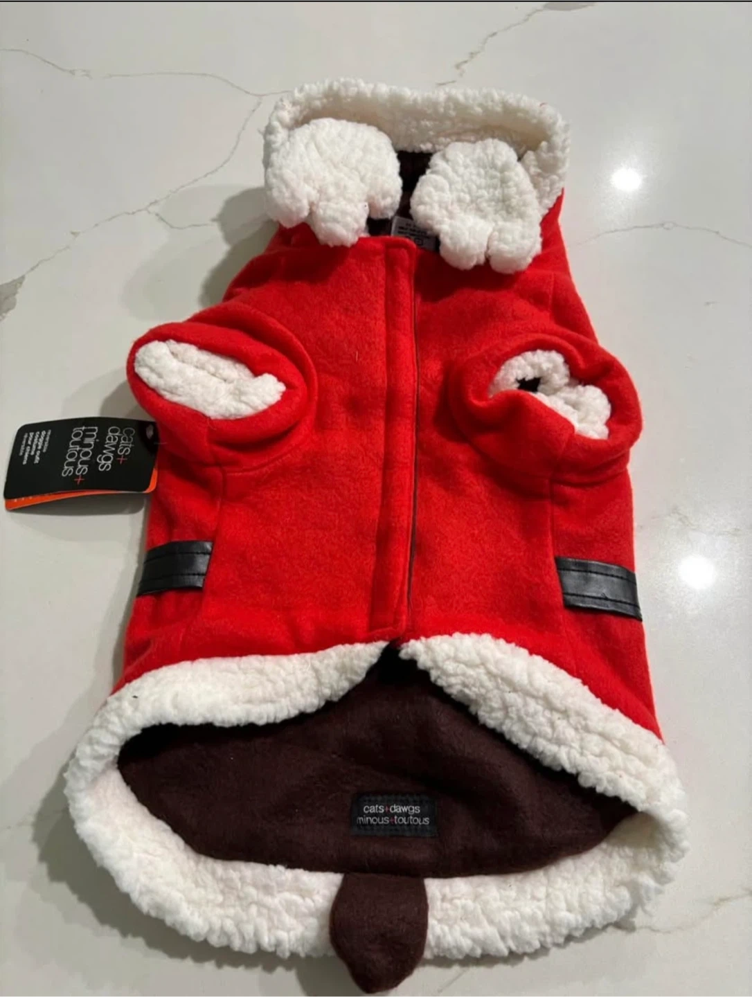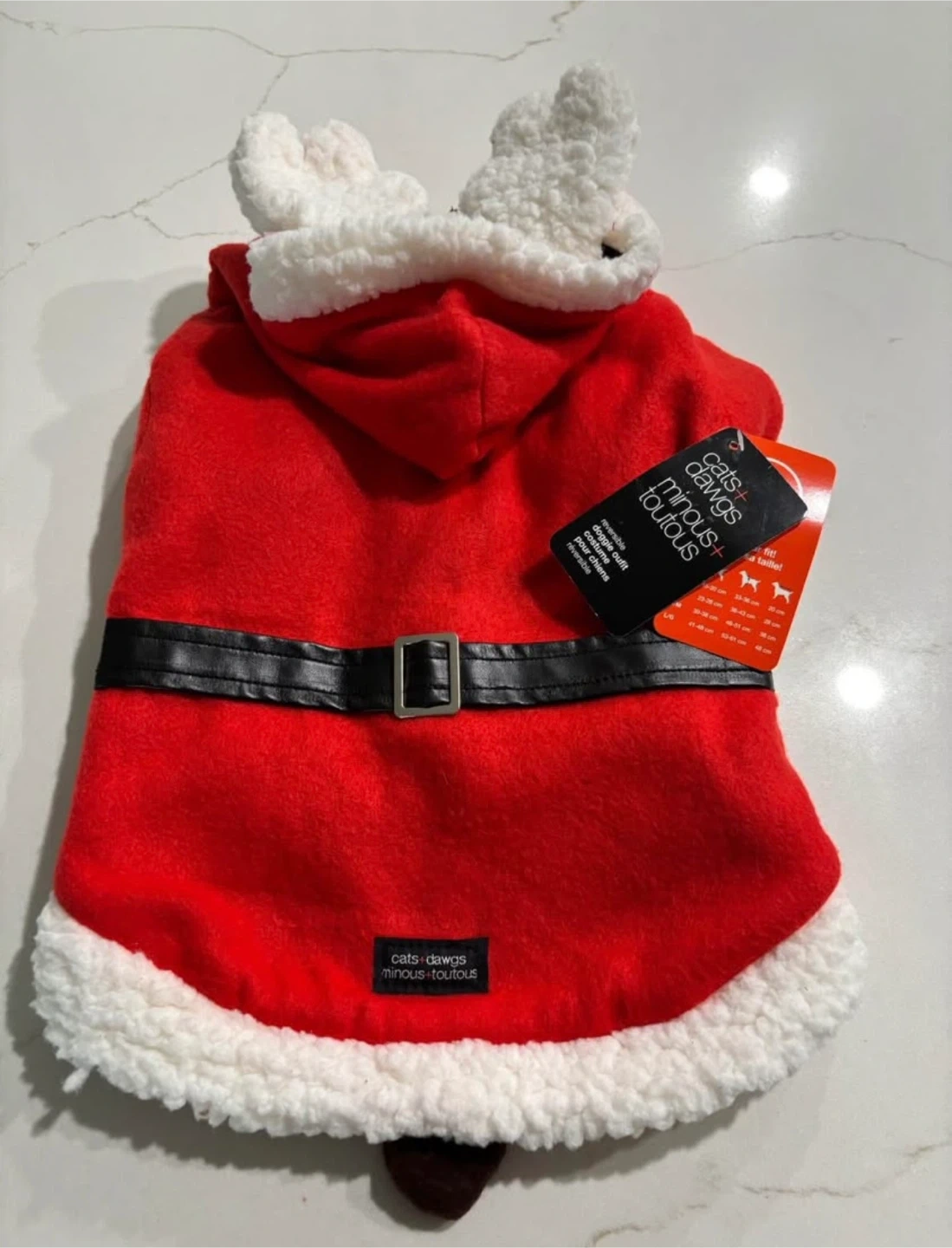15This Cats+Dawgs reversible doggie outfit is in M/M size! (Refer to size chart in photos) Santa side is red and white, (reverses to brown reindeer)and originally bought for $30