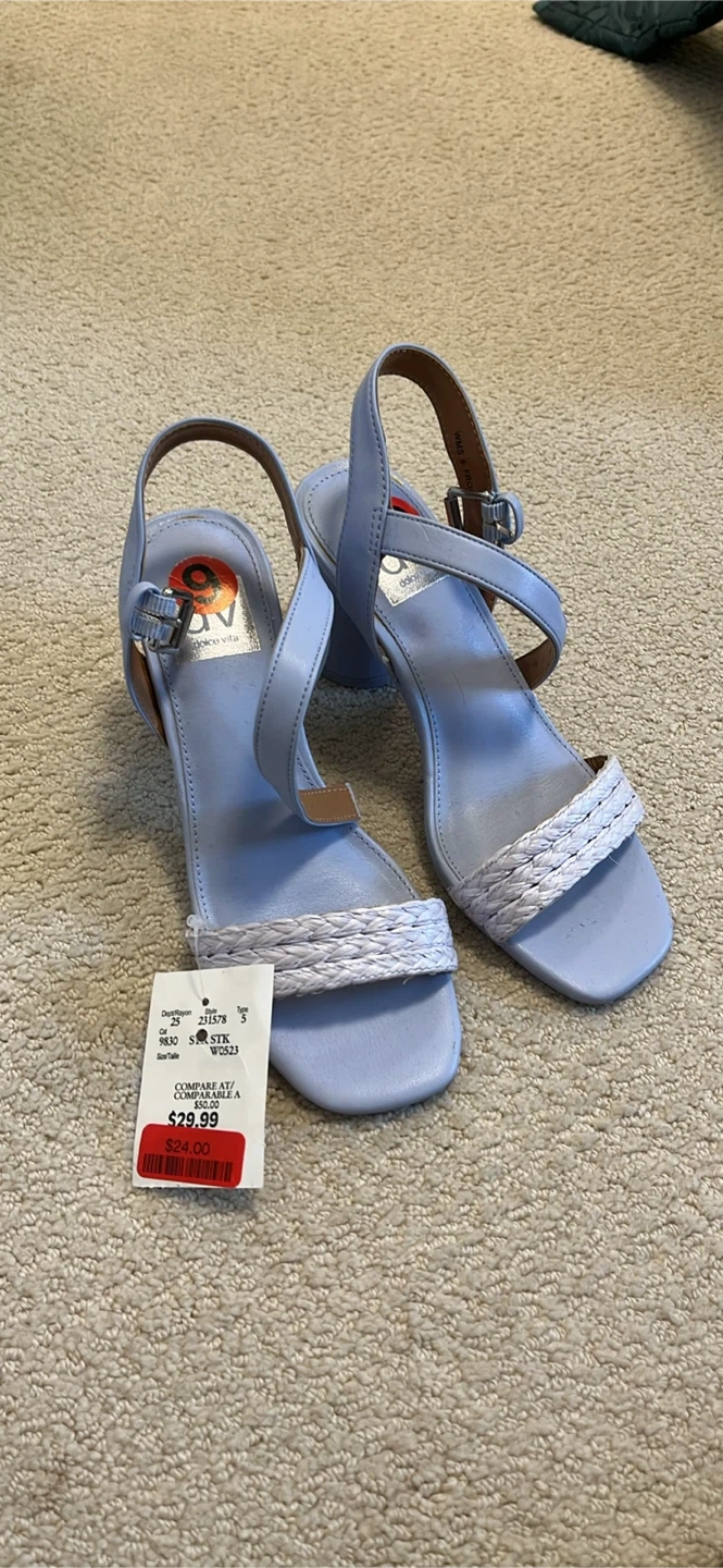 23These Circus by Sam Edelman sandals are brand new with tags! They're a lovely light blue colour and size 6. The tag shows they were originally $29.99.