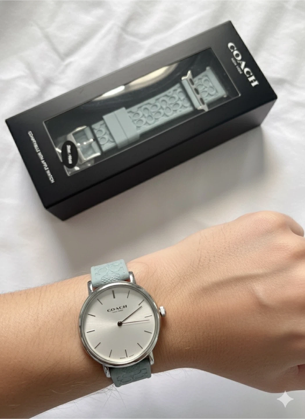 15Selling a brand new Coach Apple Watch Silicone replacement strap. Also compatible with the newer 41mm Apple Watch Models Fits all series (eg 3, 4, 5, 6, SE, 7, 8, 9) in the compatible case size