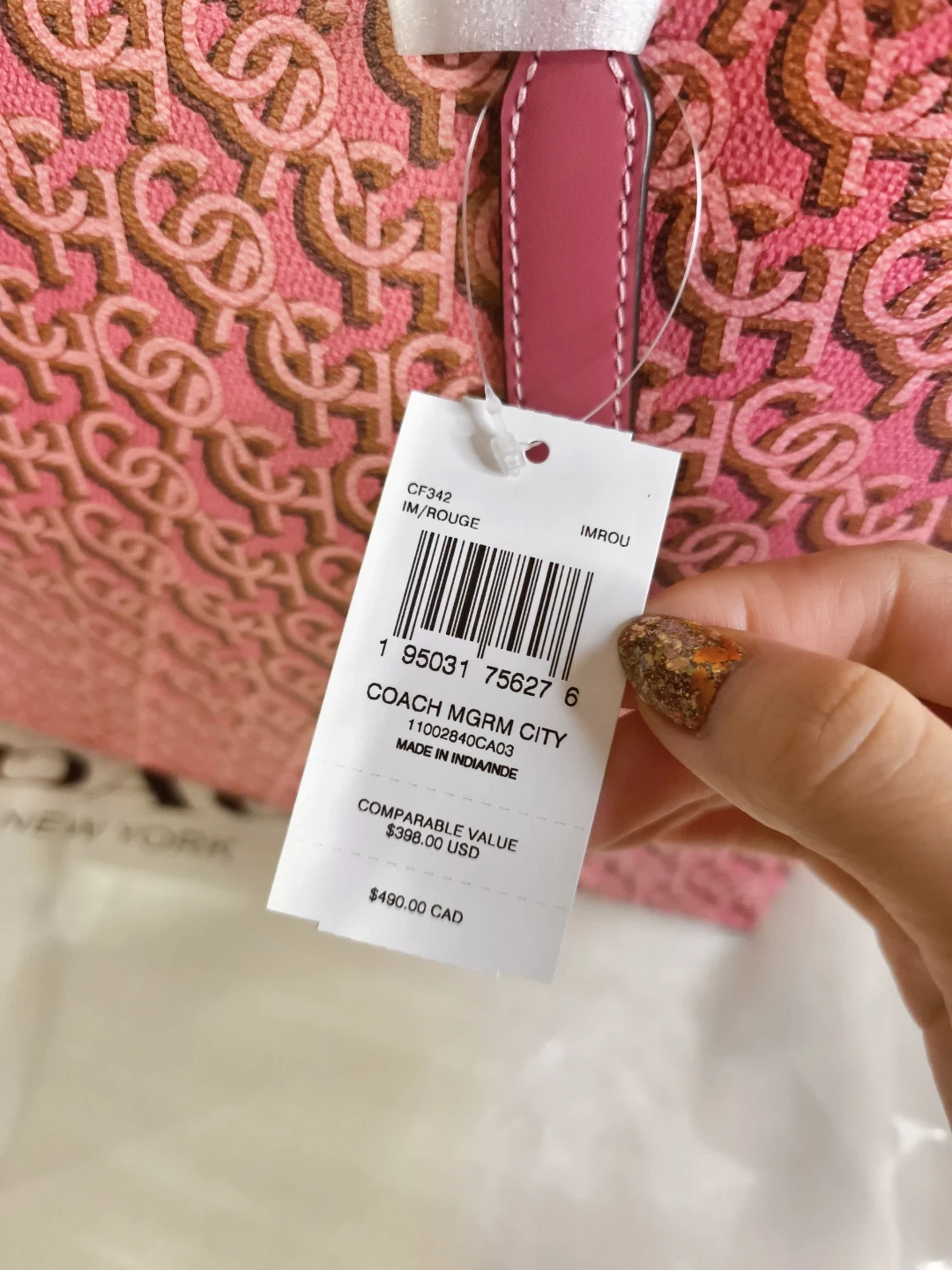 89This is a brand new Coach MGRM City tote bag in a beautiful pink colour! It still has the original packaging and tags attached. Originally bought for $490 CAD, this tote is ready for a new home. Perfect gift for your be loved one ๐ Cash only. Pick up at south Surrey area.