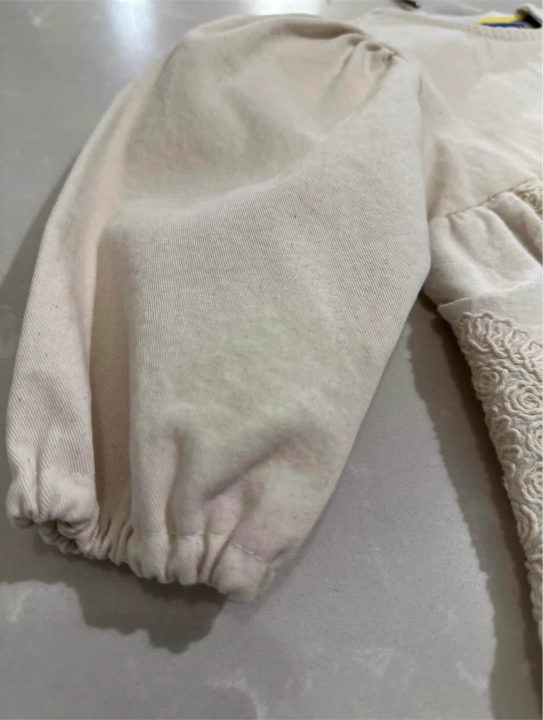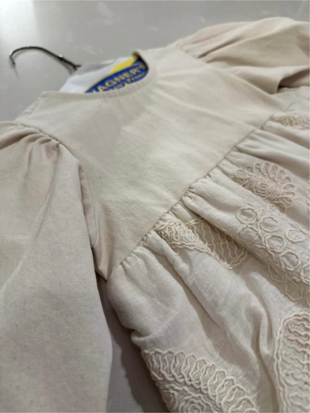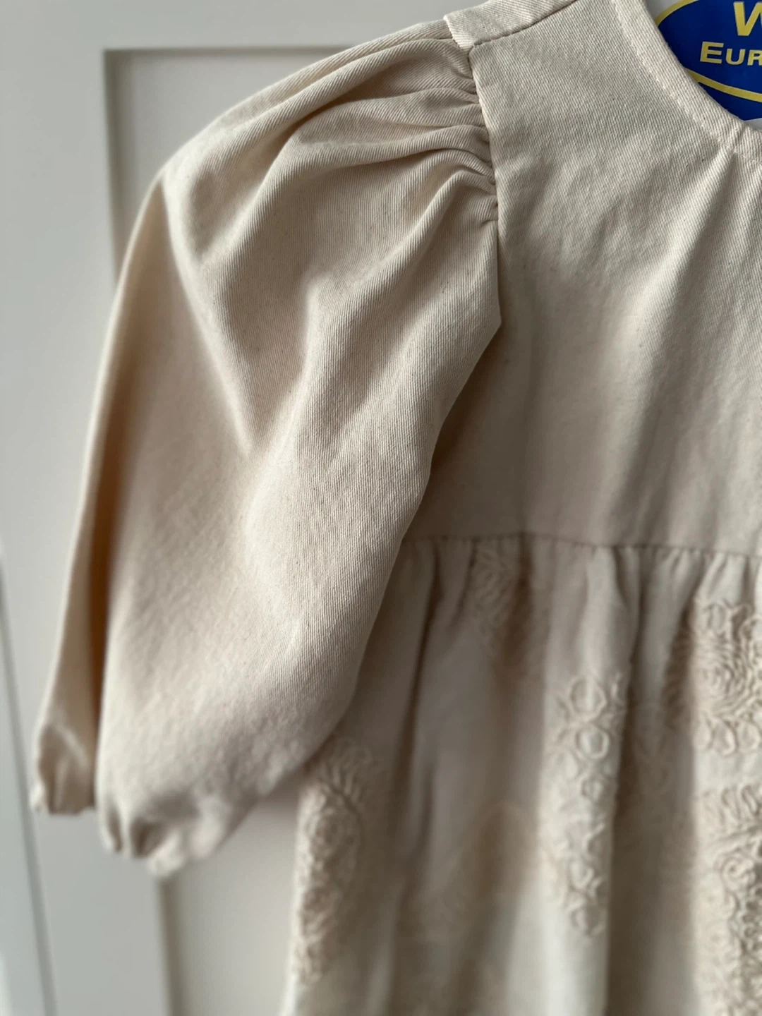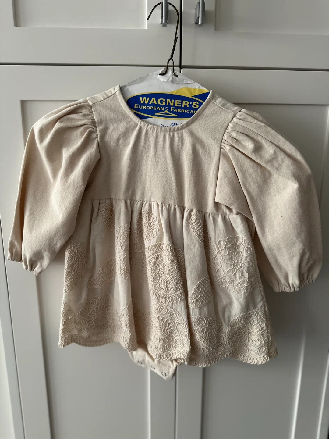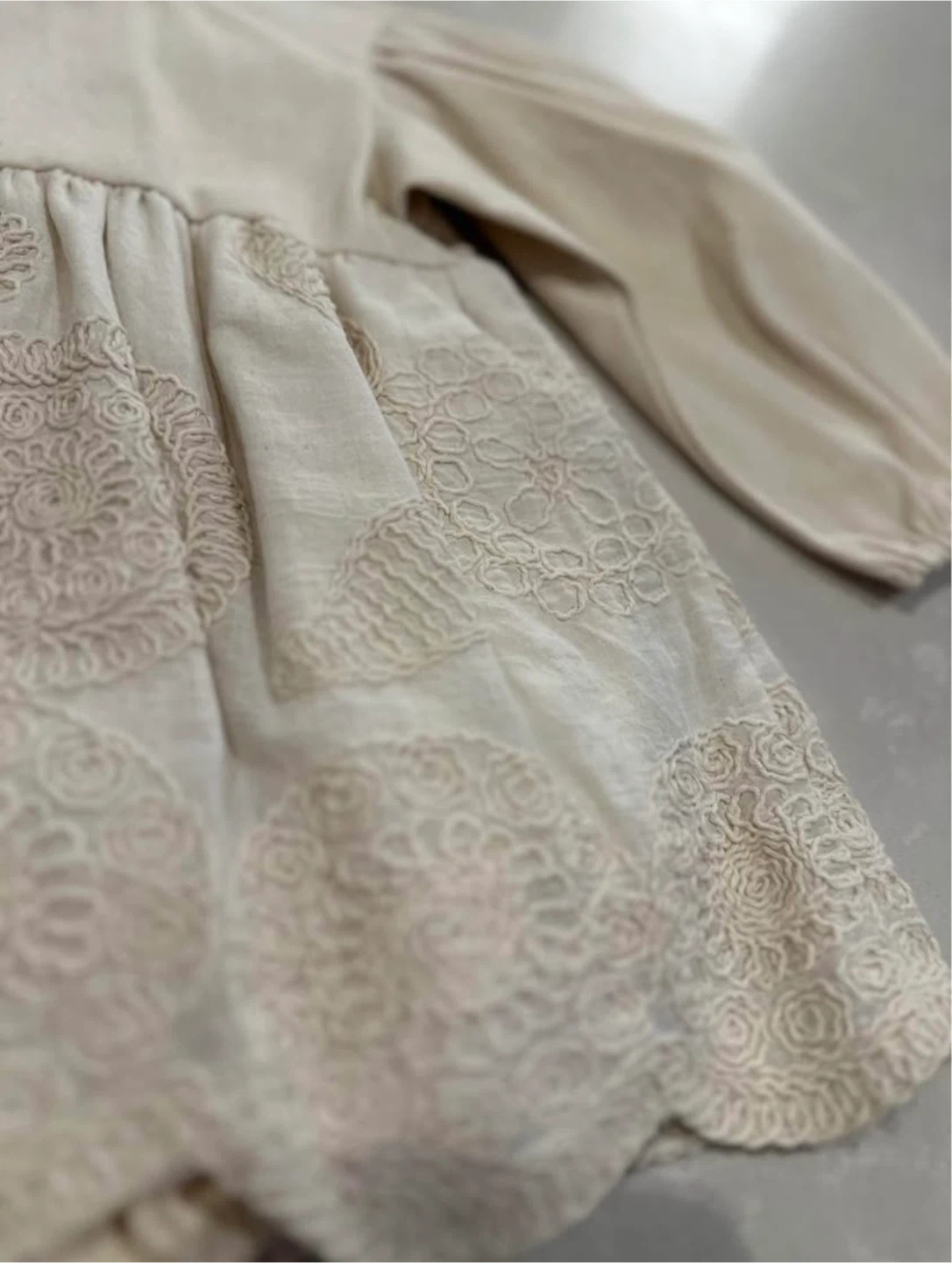 Adorable cream-coloured baby dress with delicate embroidery detailing! It's in great condition and ready for a new little one to wear. Perfect for special occasions or just looking extra cute Made in Korea In a pet-free and smoke-free home