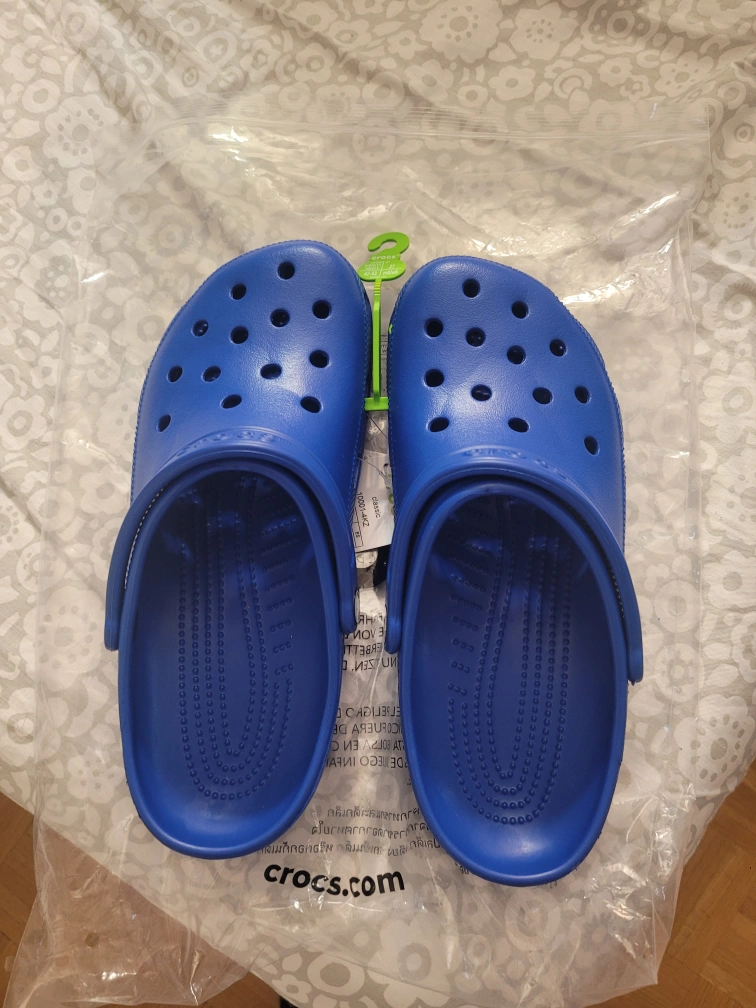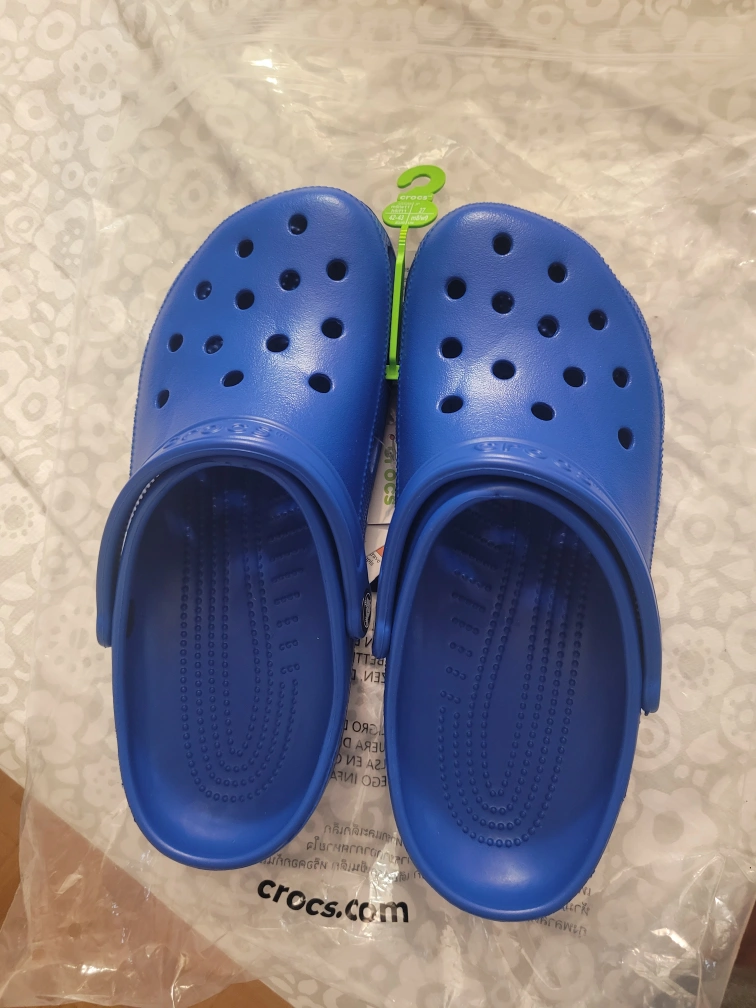 Selling a brand new pair of Crocs Classic Clogs! They are a vibrant blue colour and are men's size 9 or women's size 11. Super comfy and ready for summer adventures $40