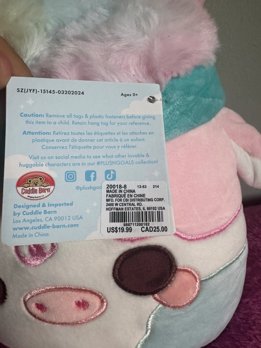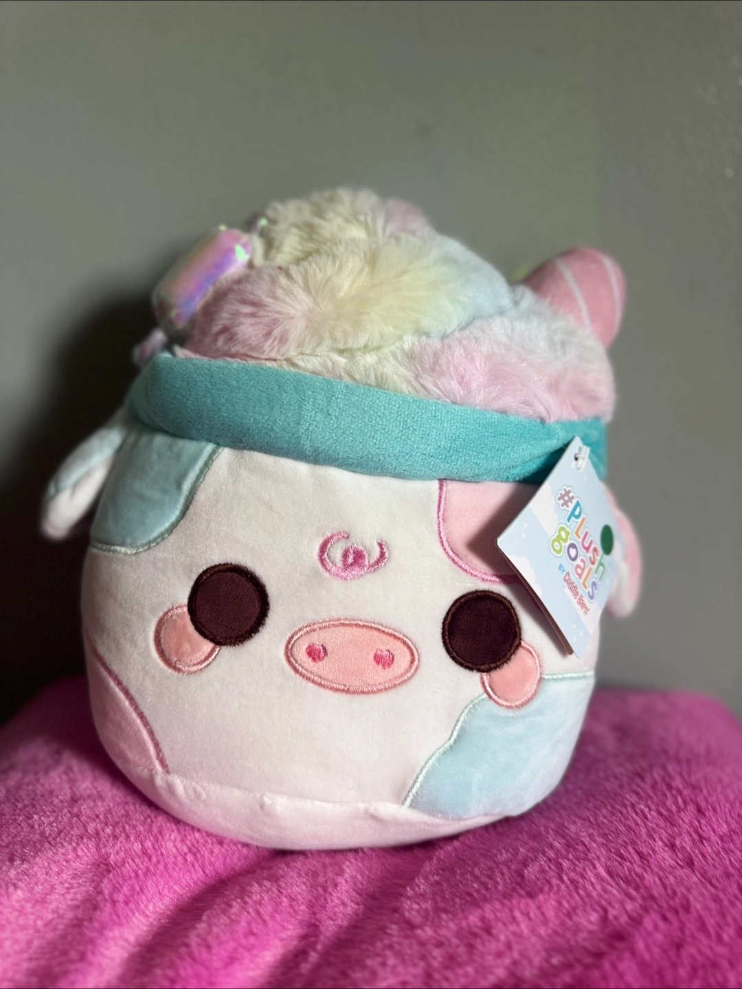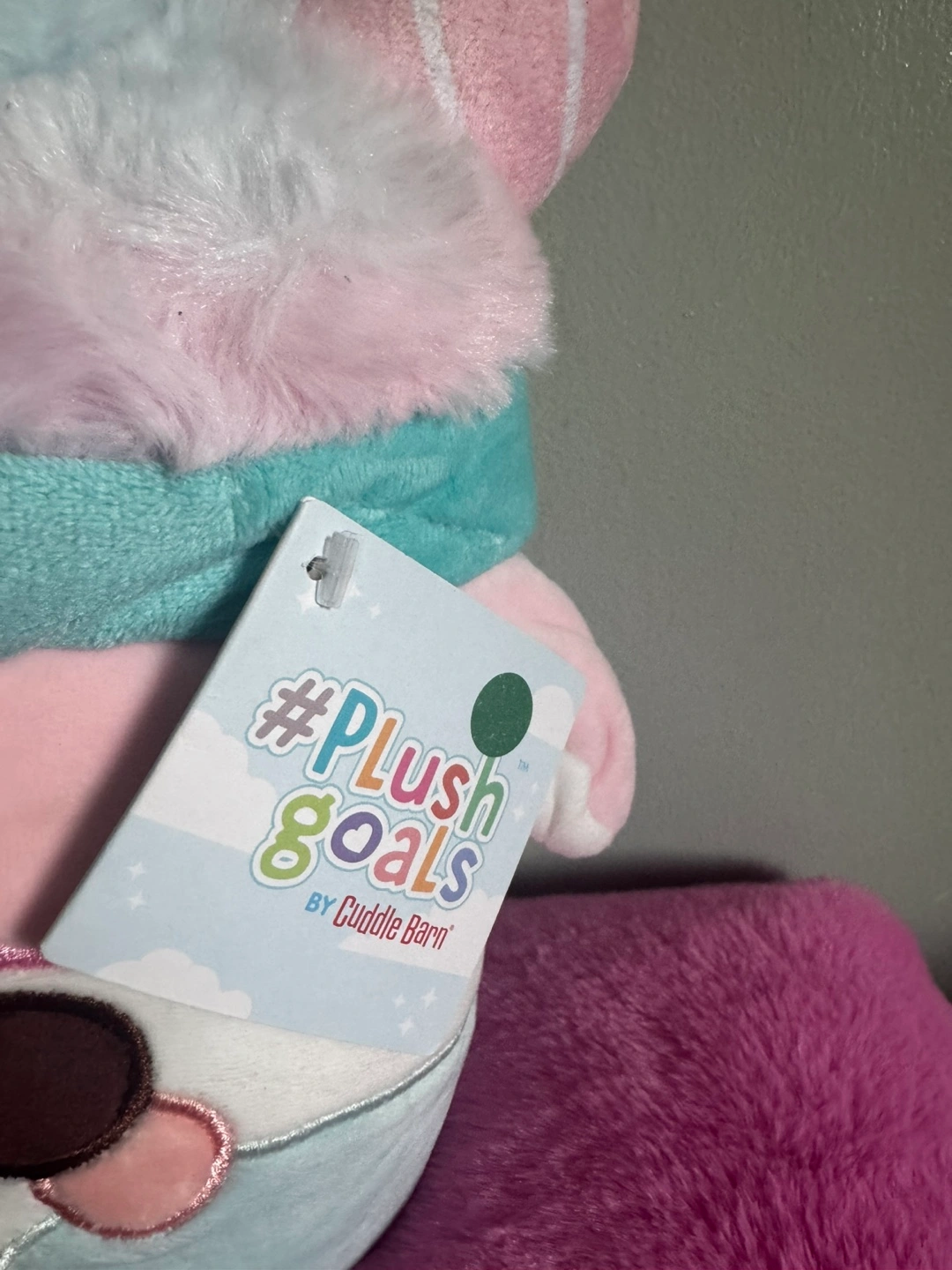 Selling a brand new Cuddle Barn Cotton Candy Mooshake plush! It's super cute and features pastel colours. The tag shows it originally retailed for $25 CAD. Great for cuddling or as a gift!