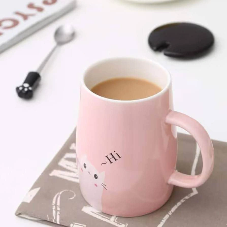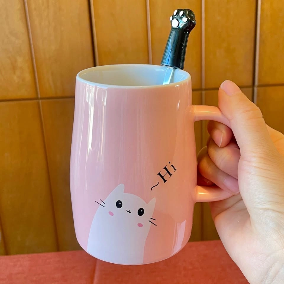 NEW✨Cute Pink Cat Mug with Lid and Paw Spoon