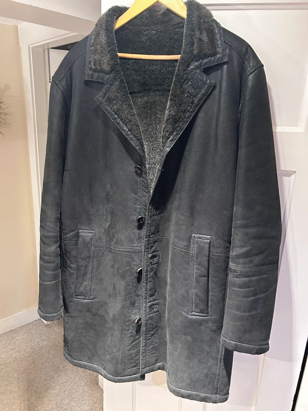 Gray Danier suede shearling car coat for sale. Never worn and in beautiful condition. Size Large 42-44