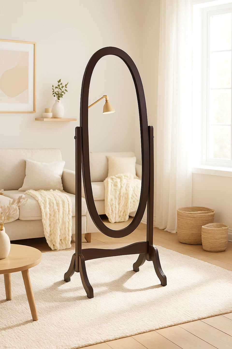 Selling a brand new cheval mirror still in its packaging! It's a full-length, tilting oval-shaped mirror with a sleek black frame. Perfect for any bedroom or dressing area. Overall Dimension: 18.9"W x 18.1"D x 57.9"H 📍Ajax