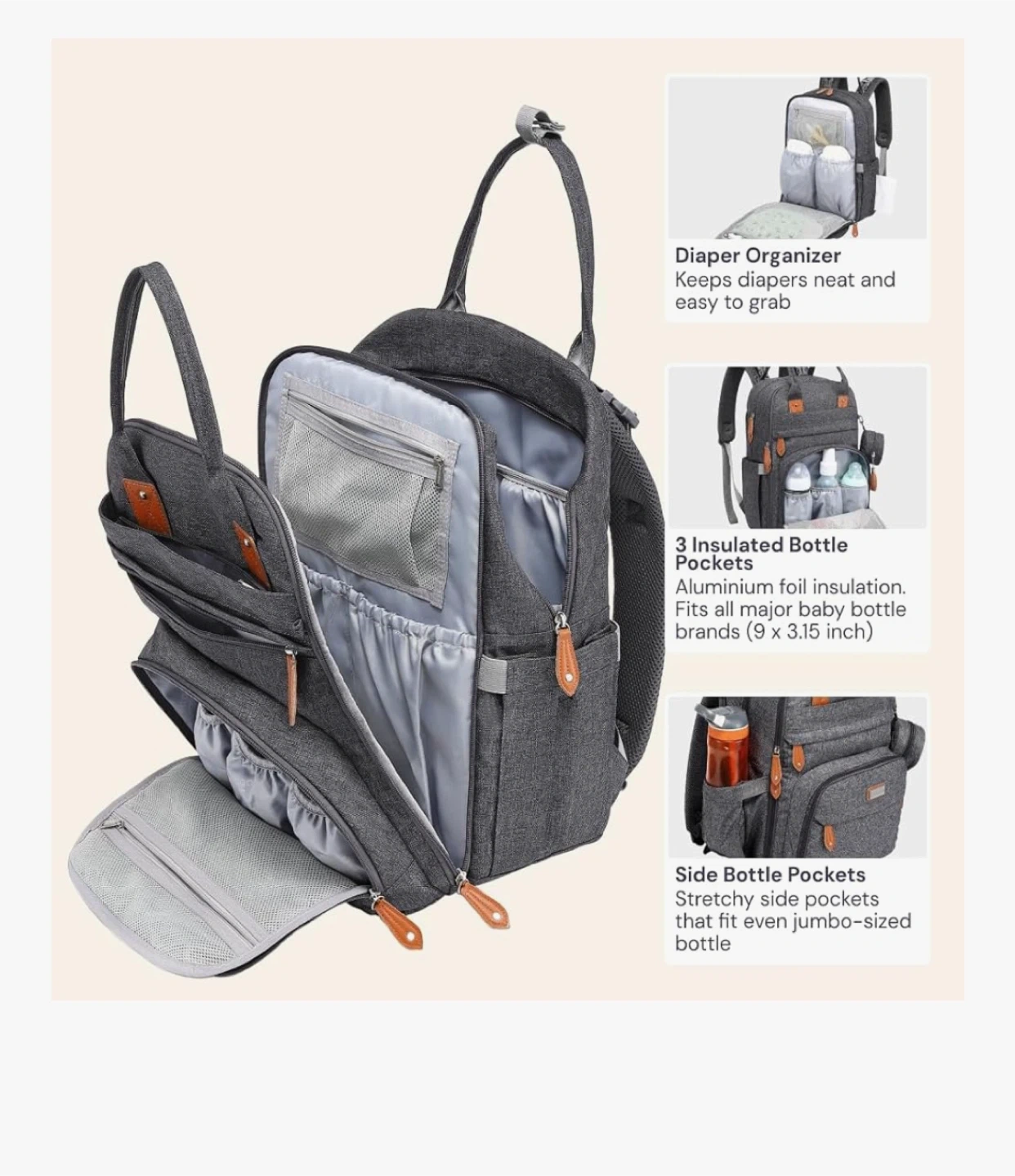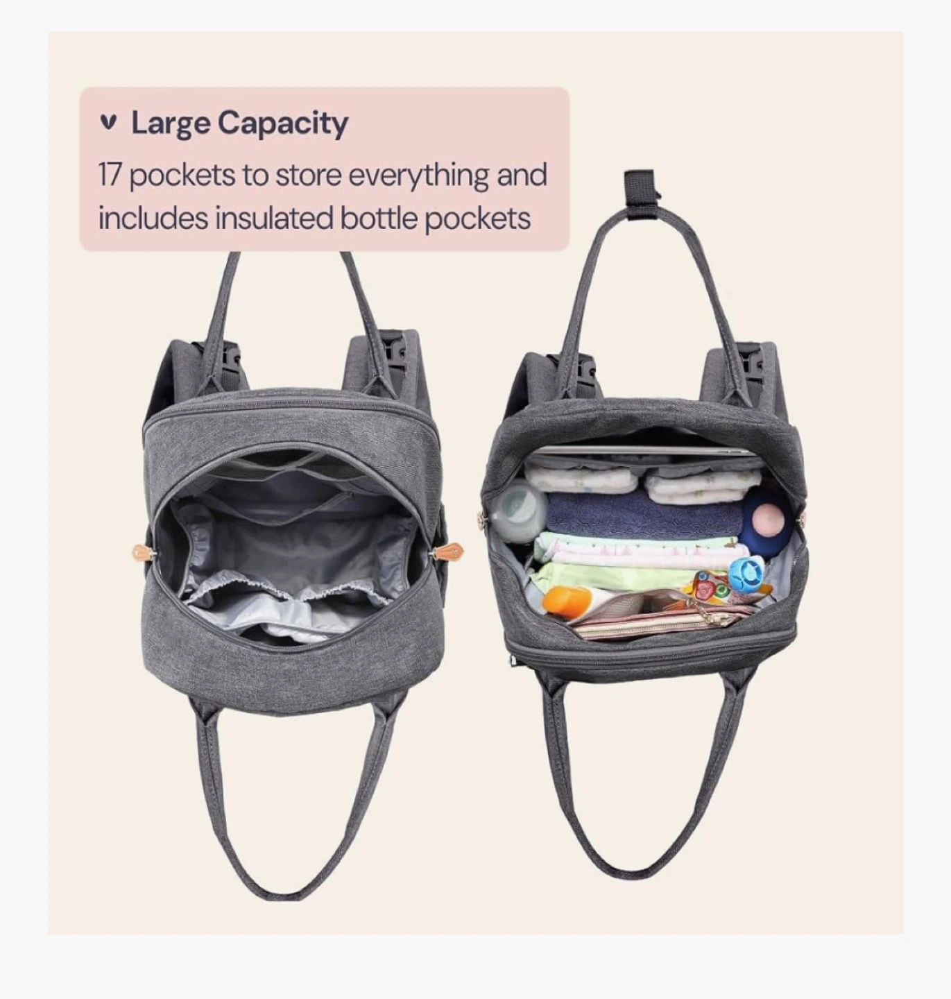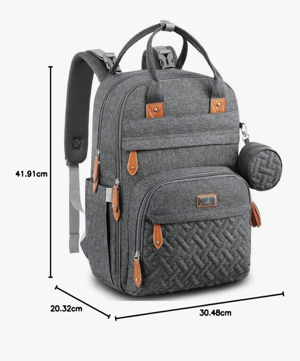 Keep baby essentials organized with this BabbleRoo diaper bag backpack! It's a stylish and practical way to carry everything you need. - Colour: Dark Gray - Features diaper organizer, 3 insulated bottle pockets, and side bottle pockets - Large capacity with 17 pockets - Includes a hidden front pocket, backside pocket for a changing pad, and a wet wipes sleeve - Height: 16.54 inches Brand new with tags! Cash only and pickup near Londonderry mall