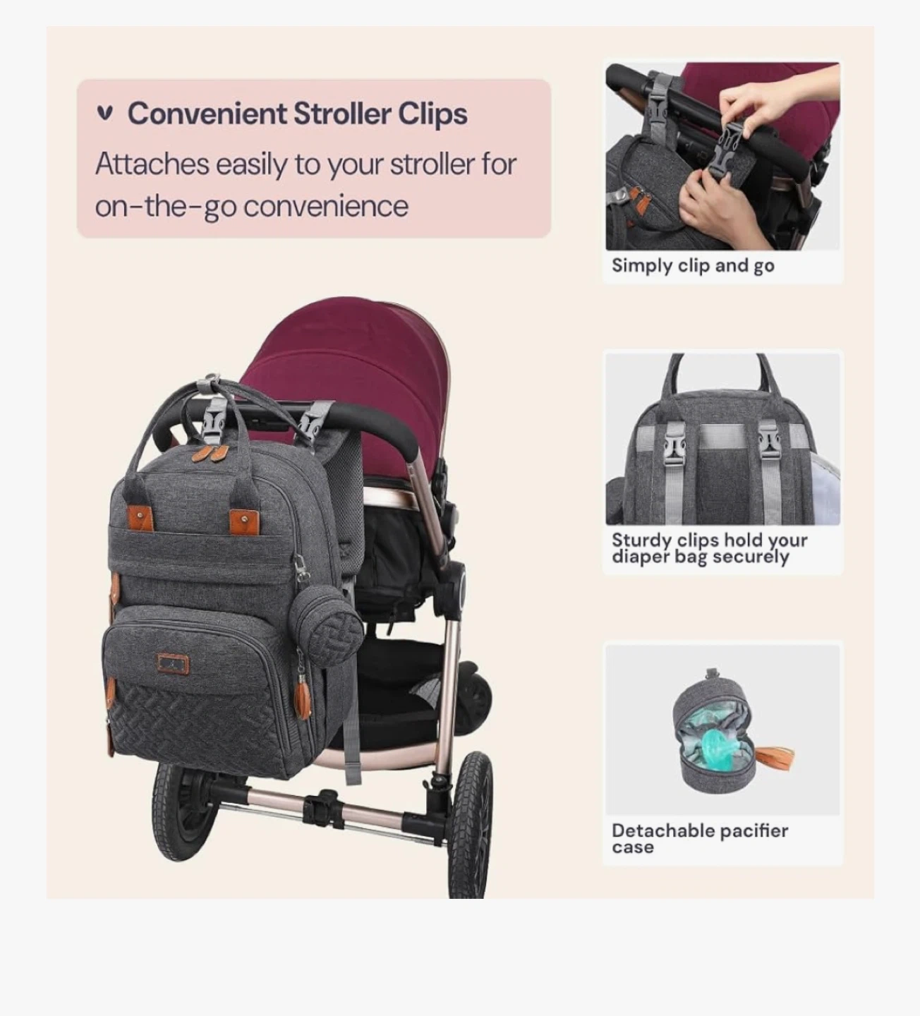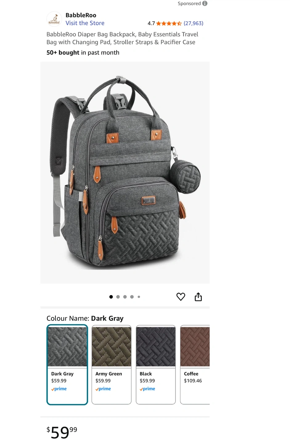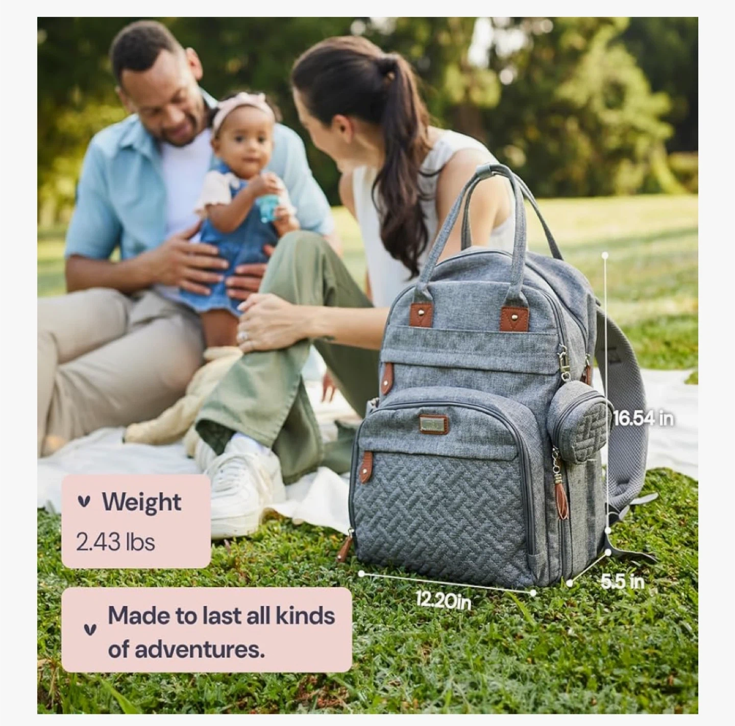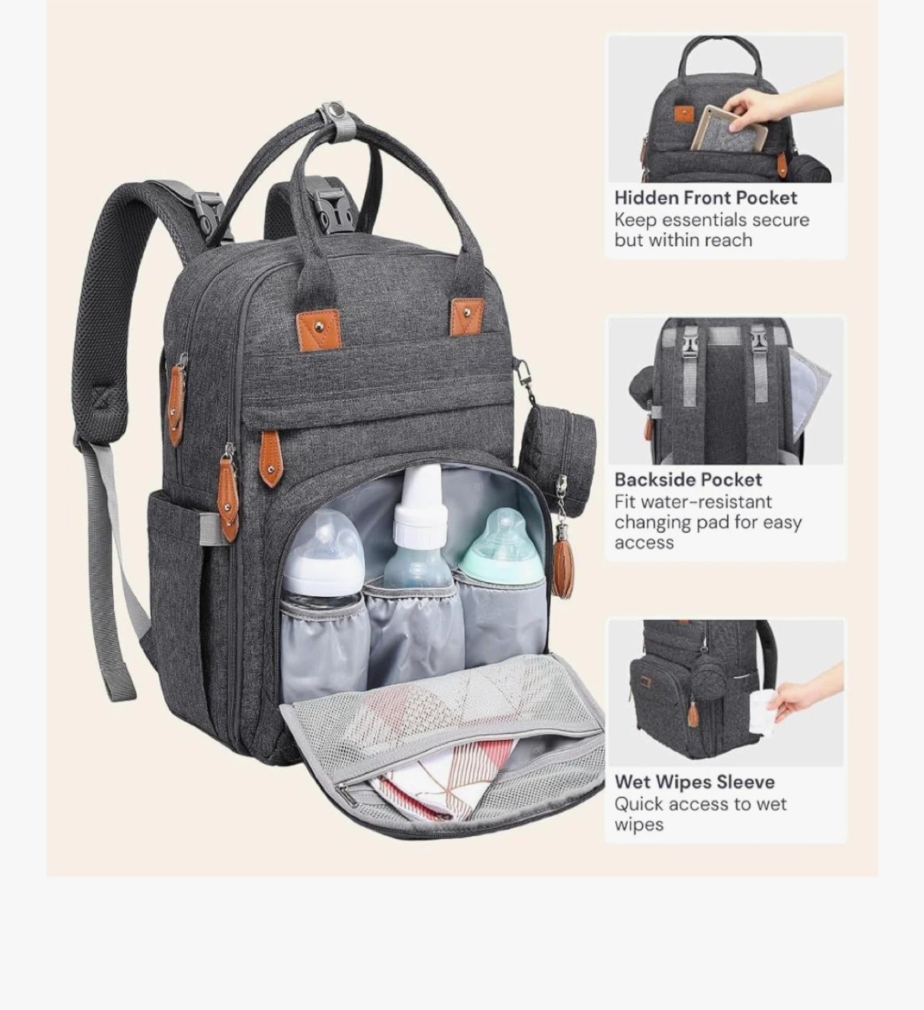 Keep baby essentials organized with this BabbleRoo diaper bag backpack! It's a stylish and practical way to carry everything you need. - Colour: Dark Gray - Features diaper organizer, 3 insulated bottle pockets, and side bottle pockets - Large capacity with 17 pockets - Includes a hidden front pocket, backside pocket for a changing pad, and a wet wipes sleeve - Height: 16.54 inches Brand new with tags! Cash only and pickup near Londonderry mall