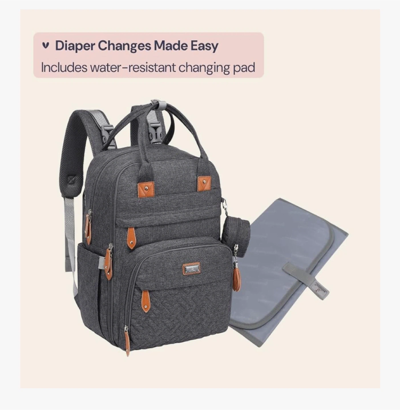 New! Vegan Leather Diaper Bag Backpack - Light Brown