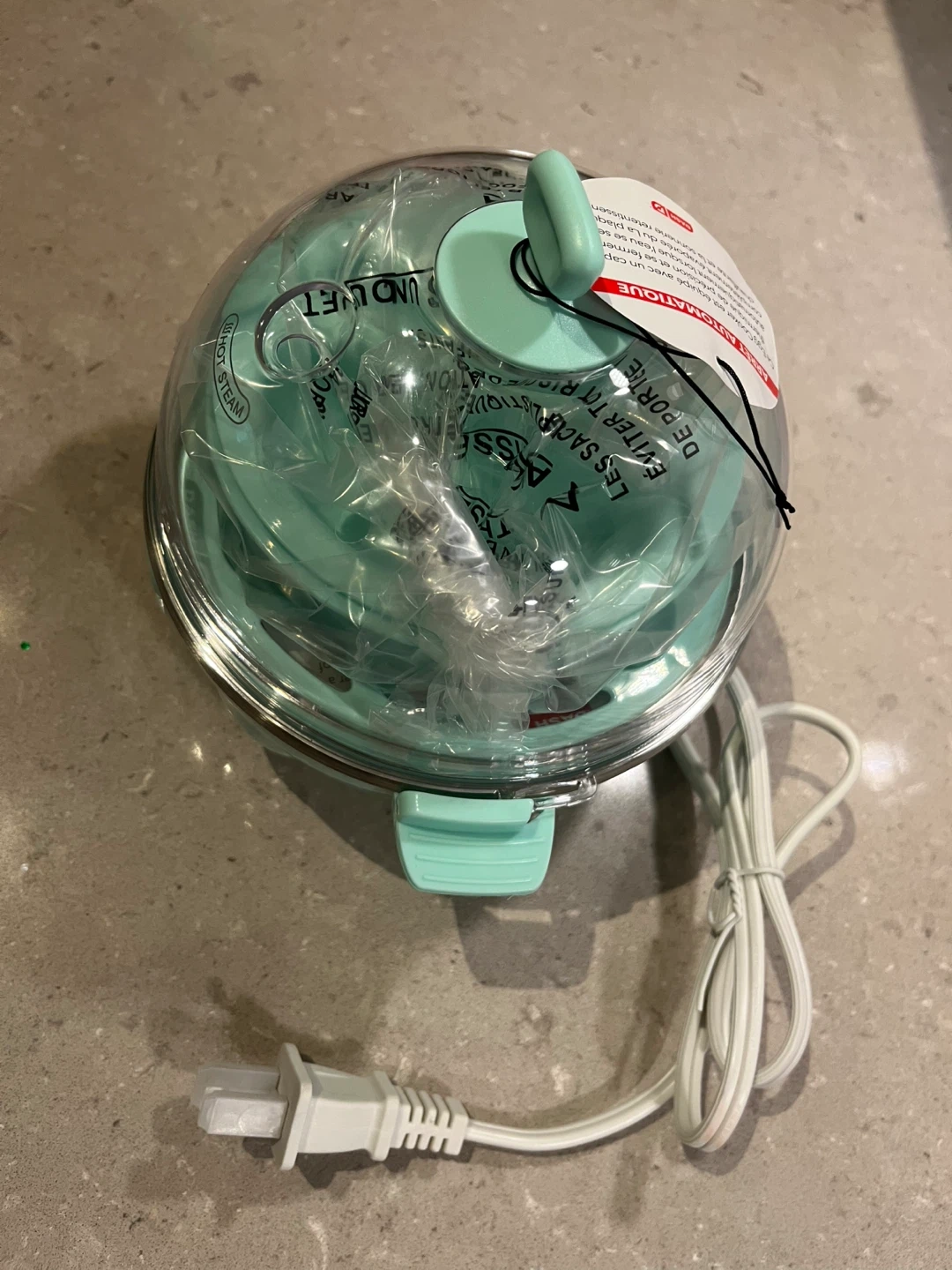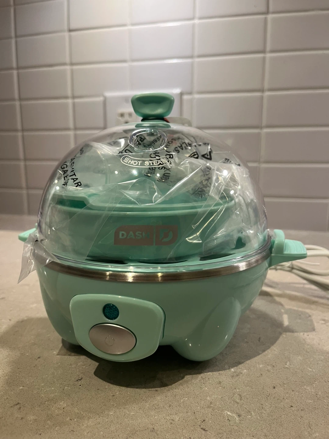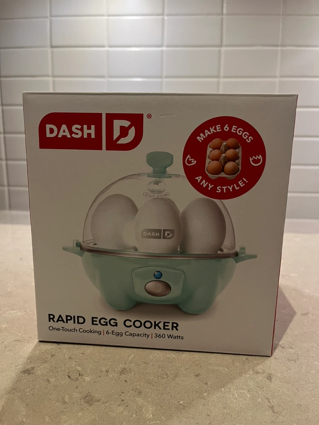 51brand new DASH Rapid Egg Cooker! It can make up to 6 eggs any style, and it features one-touch cooking. It's a mint green colour and has a 360 Watts power output. Still in the box.