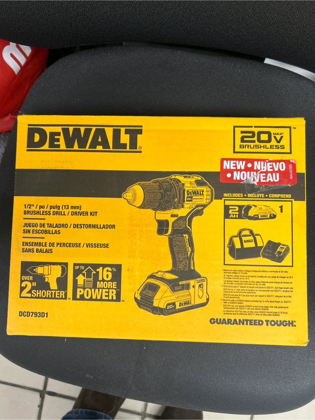 Selling a brand new DeWalt 20V Brushless Drill/Driver Kit! It's a 1/2" / po / pulg (13 mm) Brushless Drill / Driver Kit. Includes a 2 AH battery and a carrying bag. It's over 2" shorter and has up to 16% more power. Model number is DCD793D1