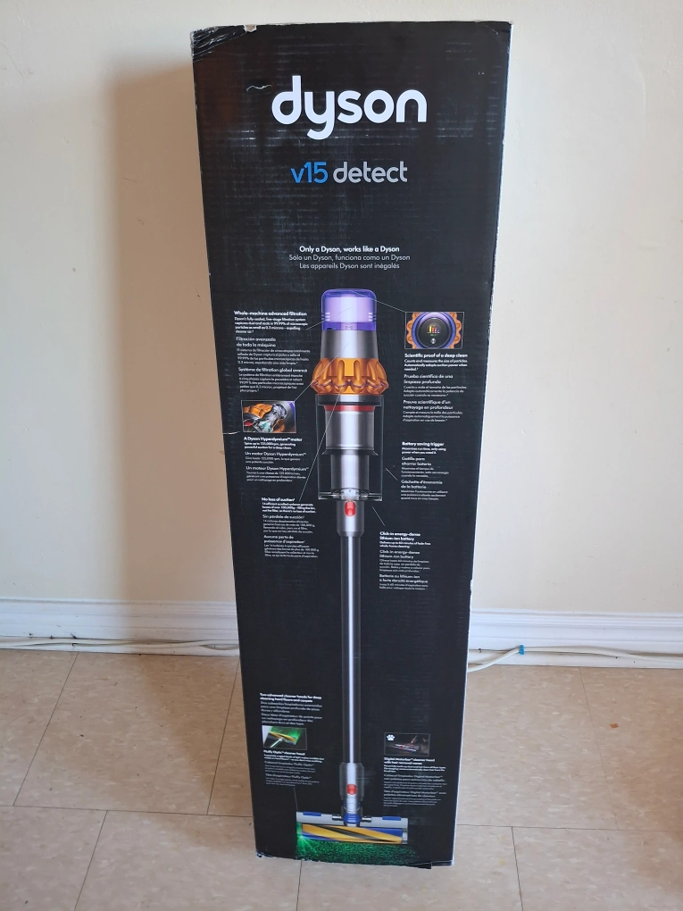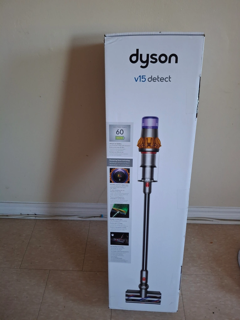 Selling a brand new Dyson V15 Detect cordless vacuum! It's still in the box and has never been used. This vacuum features advanced filtration and scientific proof of deep cleaning. It also has a battery saving trigger and up to 60 minutes of run time.Price $700 or nearest offer.