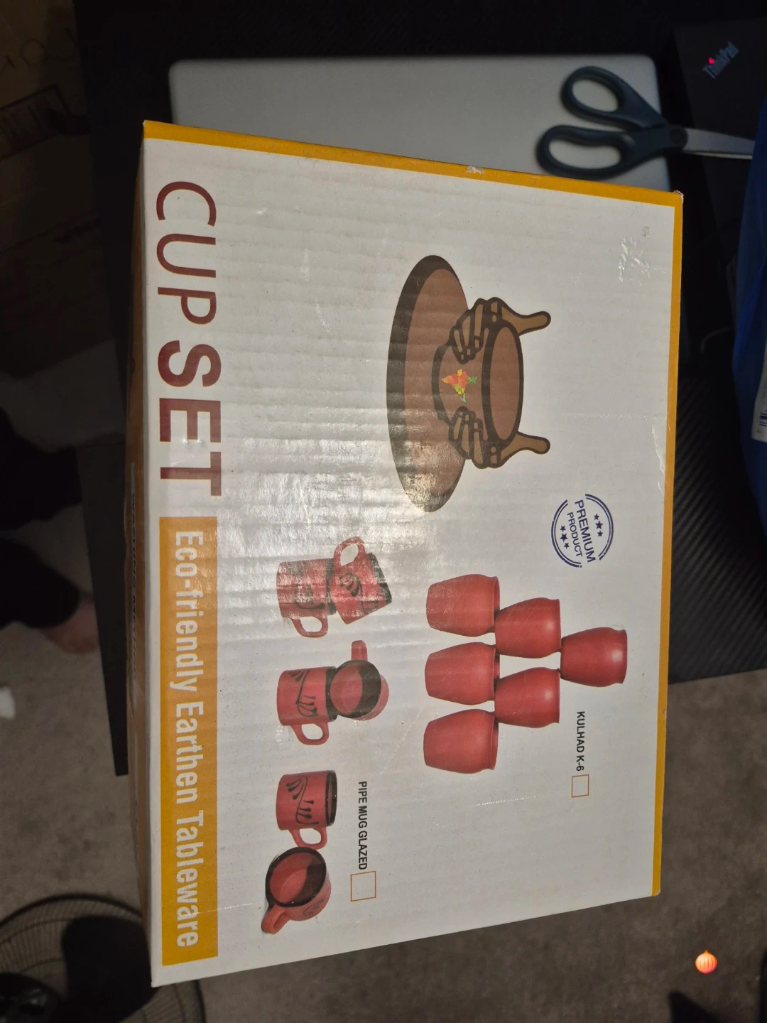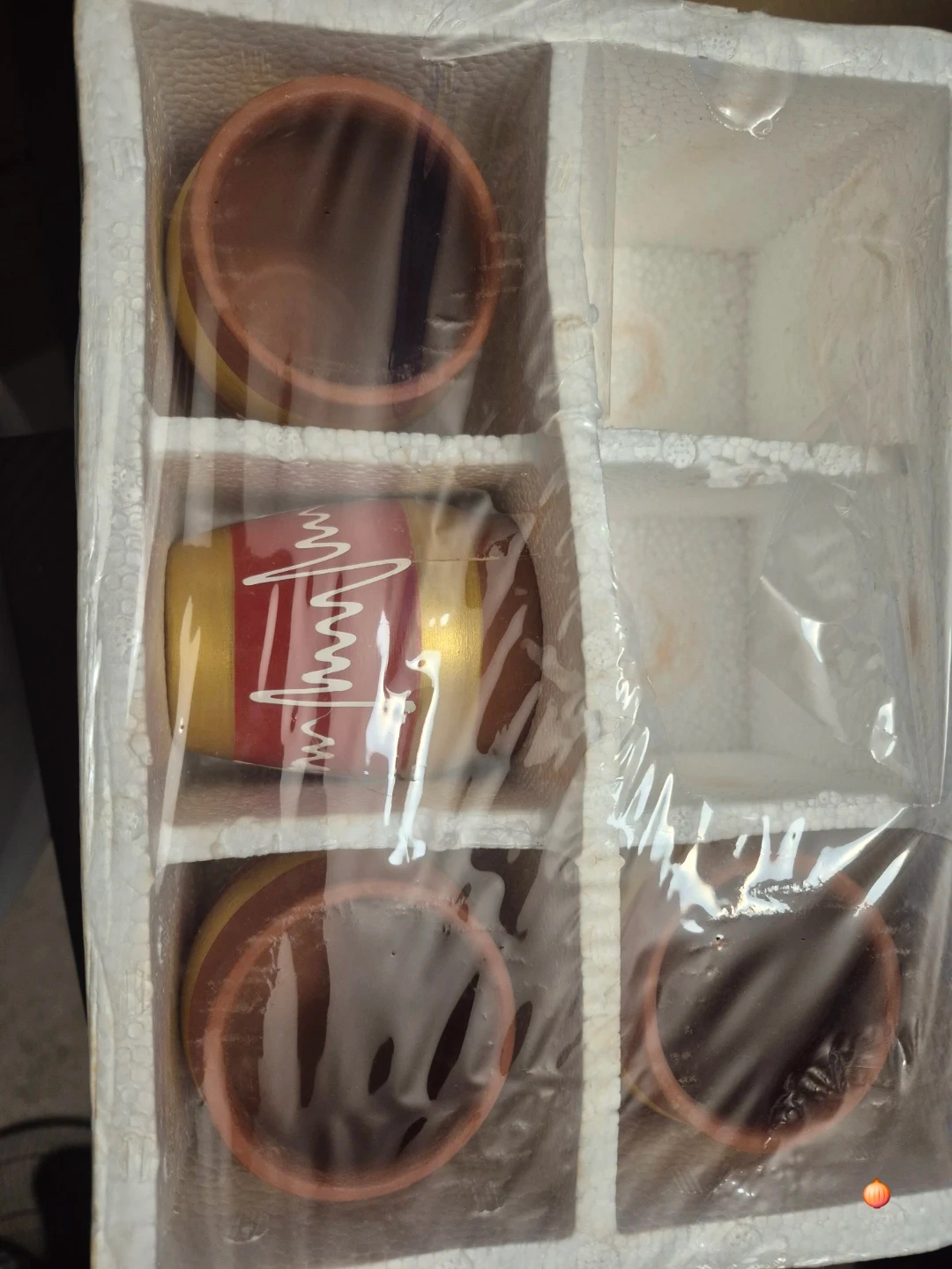 10I'm selling a brand new eco-friendly earthen cup set! It's still in its original packaging and ready for a new home. The box mentions that it's made with 100% natural clay.