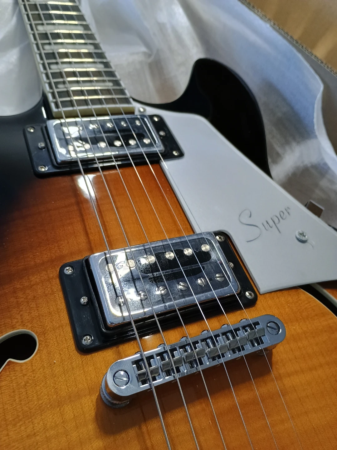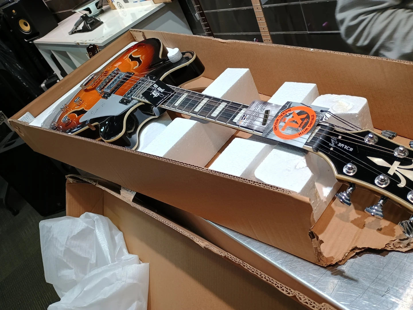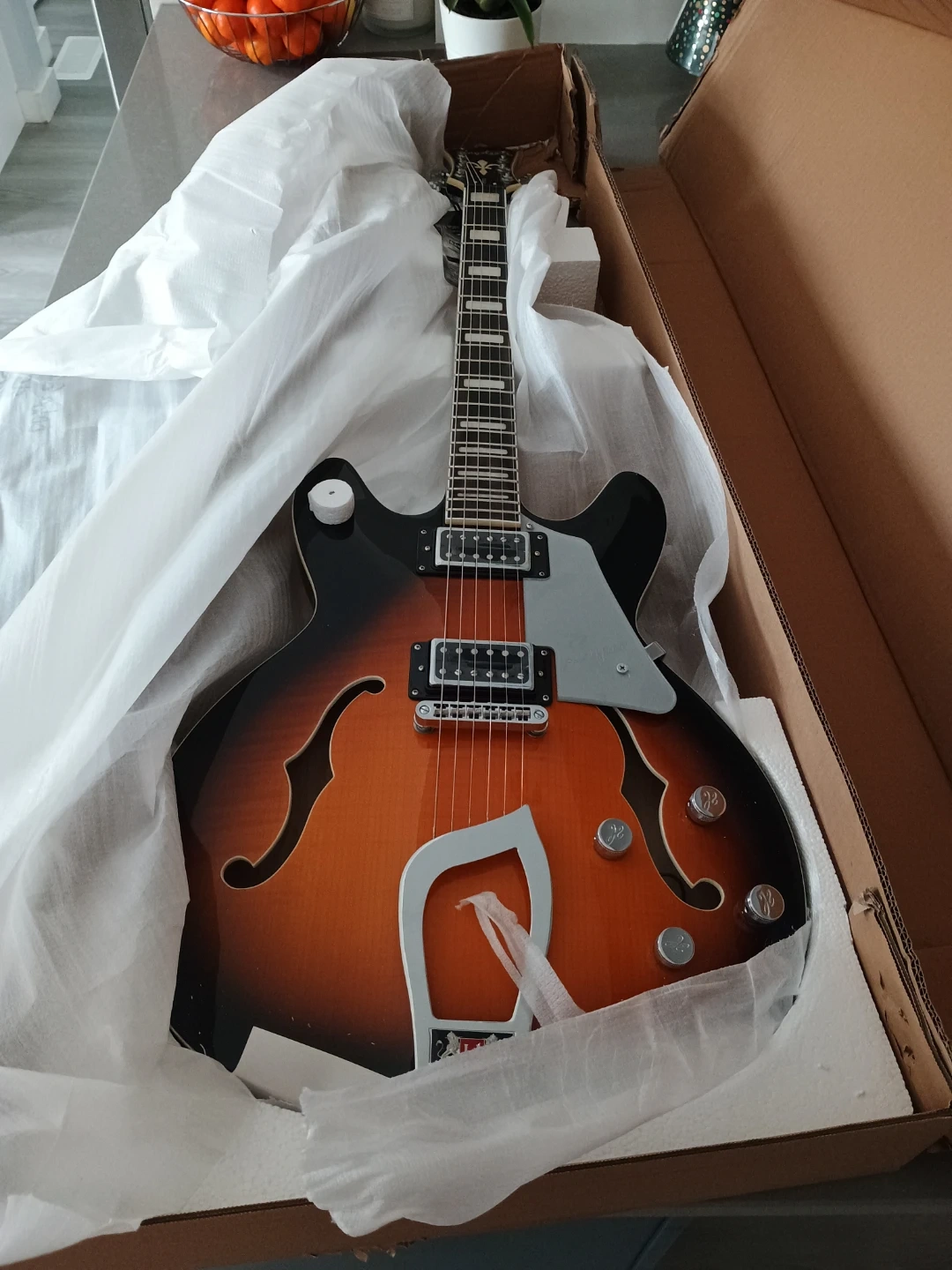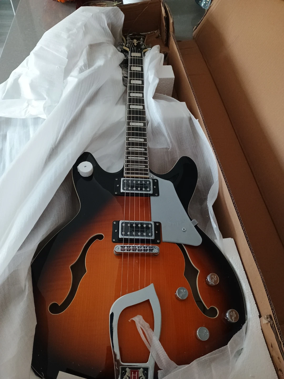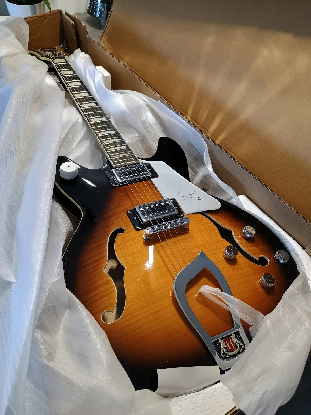 128Brand new electric guitar HAGSTROM SUVIK-TSB SUPER VIKING SEMI-HOLLOW. I don't play, its just opened as to test that it is working properly
