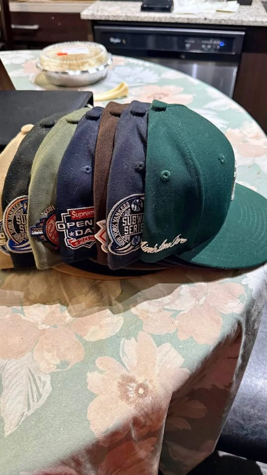15Hats are as listed and are all size 1/2. Aime Leon Dore low profile: 50$ New York Yankees - Subway Series Patch: 30$ Undefeated San Diego padres: 60$ Supreme opening day side patch: 60$ Yankees olive 100th anniversary side patch: 40$ New York Mets - subway series patch: 30$ Chicago white Sox tan - World Series patch: 30$ I will make deals on multiple purchases or if you buy the lot of hats I'll sell it for 250$ Meetups at Markville/Fairview Mall. Message me for inquiries