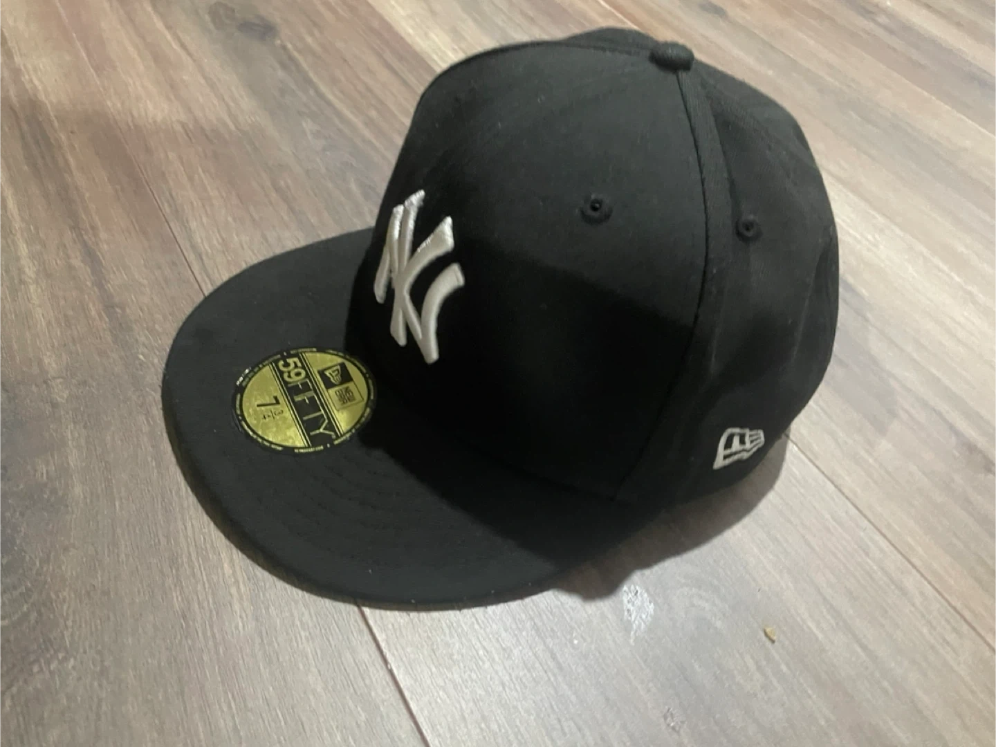 Selling a New Era NY Yankees 59FIFTY fitted hat. It's black and in great condition. The size is 7 3/4.