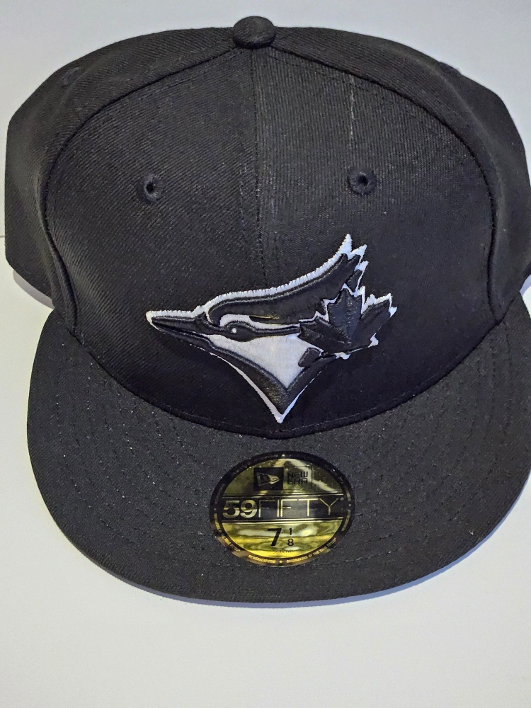 23Selling a New Era 59Fifty fitted hat featuring the Toronto Blue Jays logo. It's black and size 7 1/8. The style/modele is 21566136. Originally bought for $59.99!