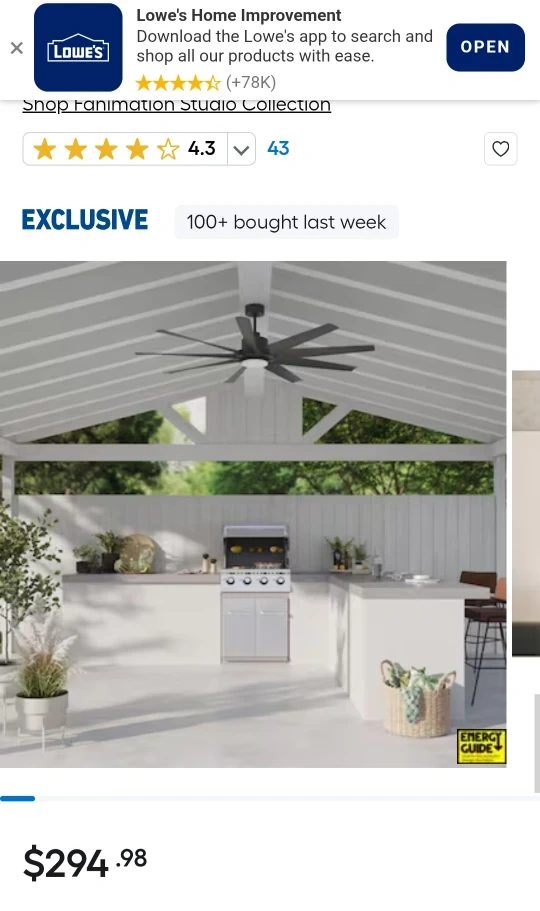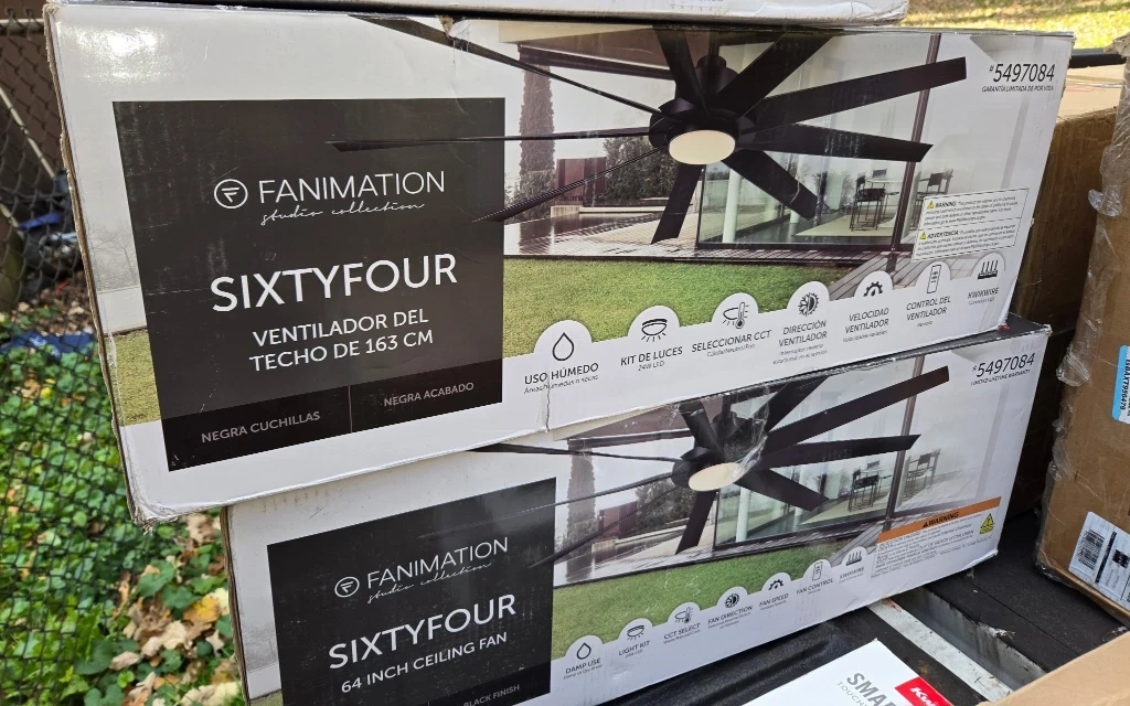 60I'm selling a brand new Fanimation Studio Collection Sixtyfour 64 inch ceiling fan! This fan features a sleek black finish and is perfect for both indoor and outdoor use. The box includes the light kit and remote control for easy operation. Originally bought for $294.98. I have 2