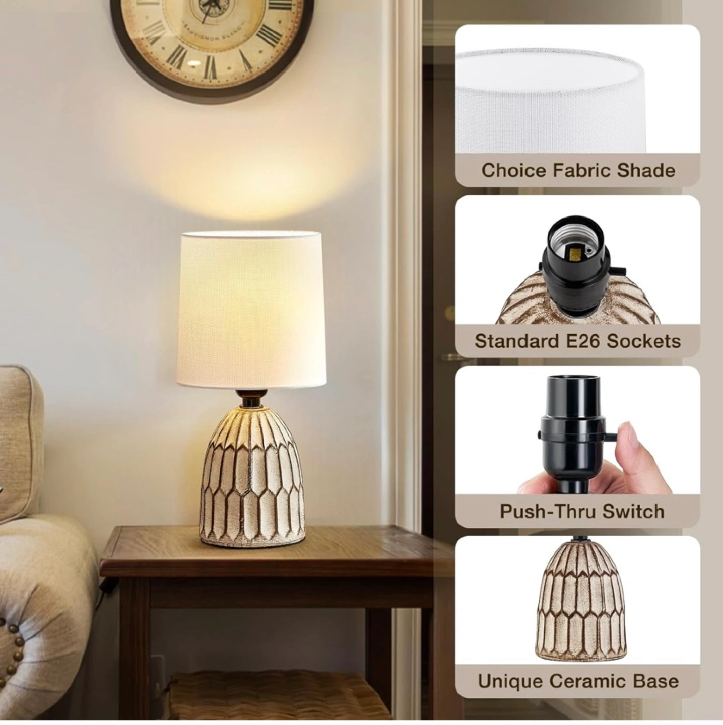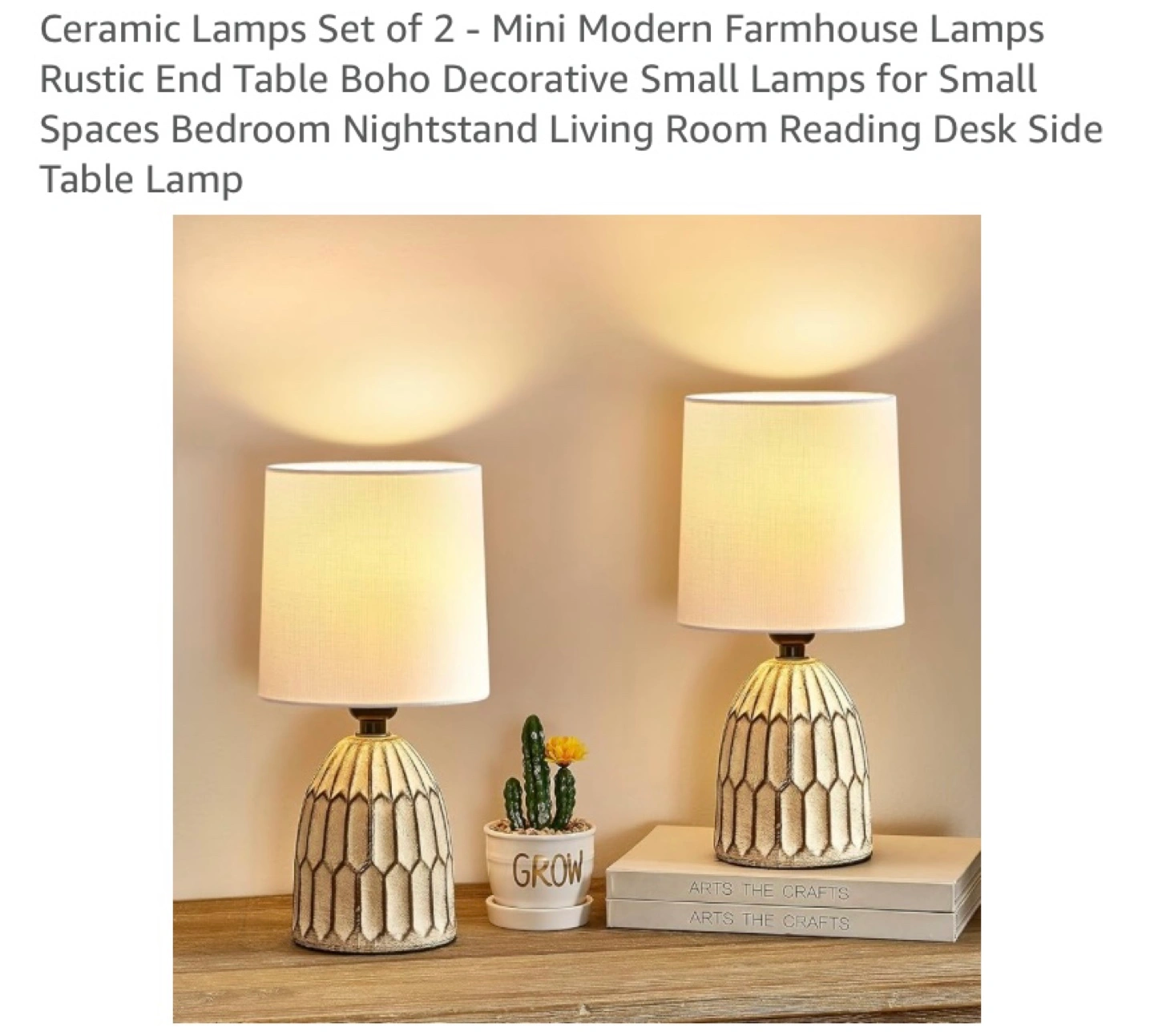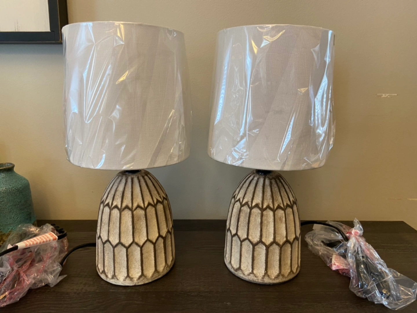 291New Farmhouse Table Lamps Set of Two Ceramic Base Linen Shade $40 firm Pickup in Whitby