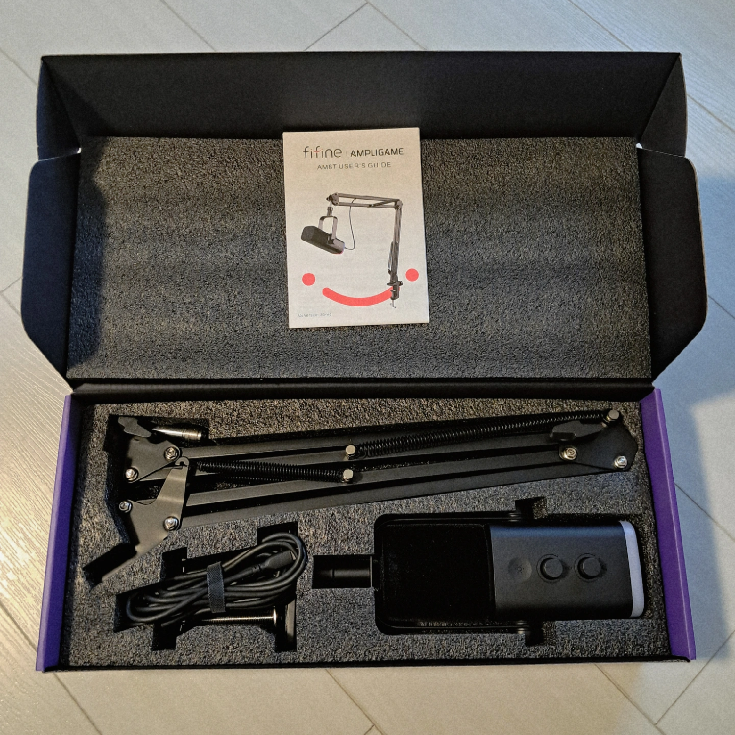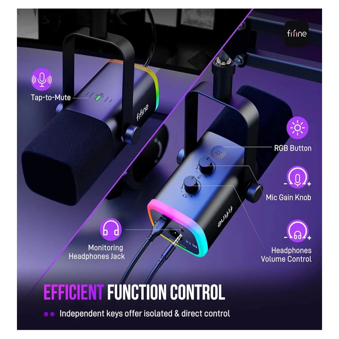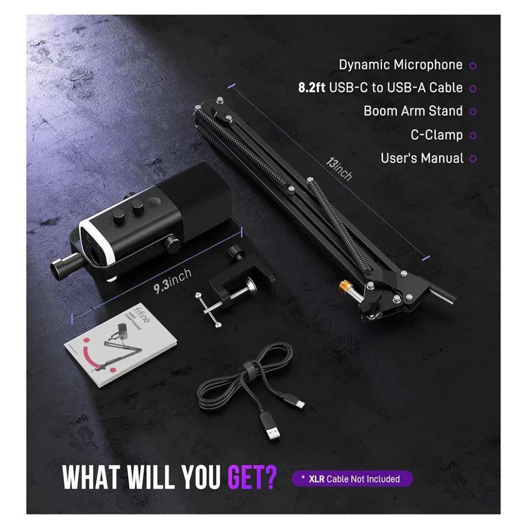 Selling a Fifine AM8T Gaming Microphone Kit, perfect for streaming and podcasting! It comes with: - Dynamic Microphone - 8.2ft USB-C to USB-A Cable - Boom Arm Stand - C-Clamp - User's Manual It features switchable RGB and both USB and XLR connectors. Efficient function control with independent keys for isolated and direct control. Tap-to-mute function and a monitoring headphones jack are also included. The box is included!