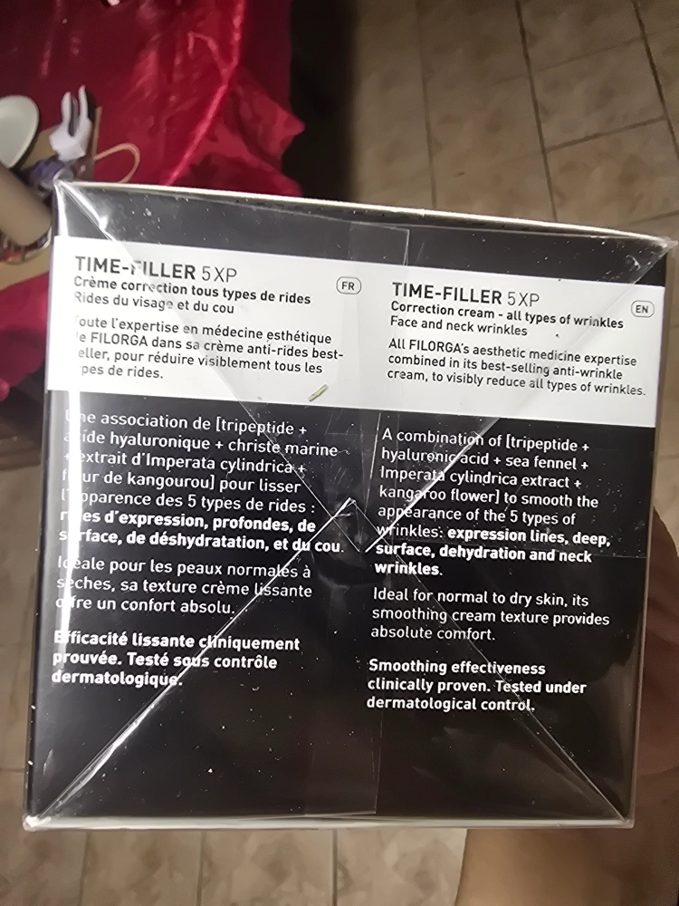 Selling a Filorga Time-Filler 5XP Correction Cream. It's a cream for all types of wrinkles. It contains 5-XP complex, peptides, and acide hyaluronique. Ideal for normal to dry skin, face and neck wrinkles. Smoothing effectiveness clinically proven and tested under dermatological control