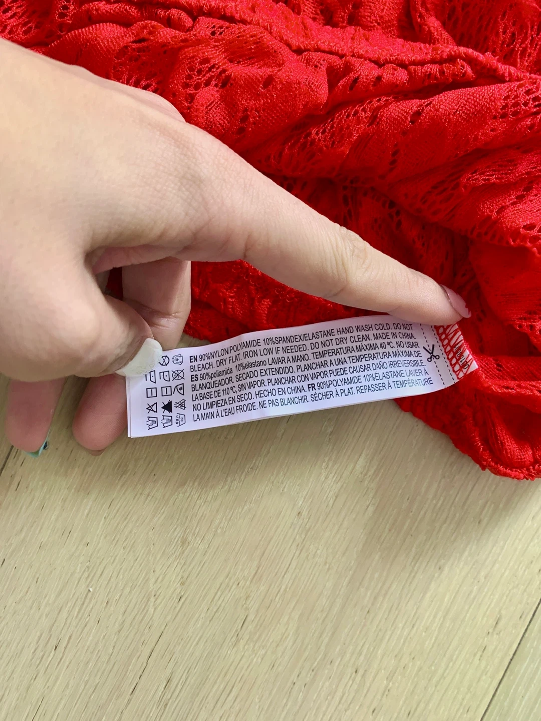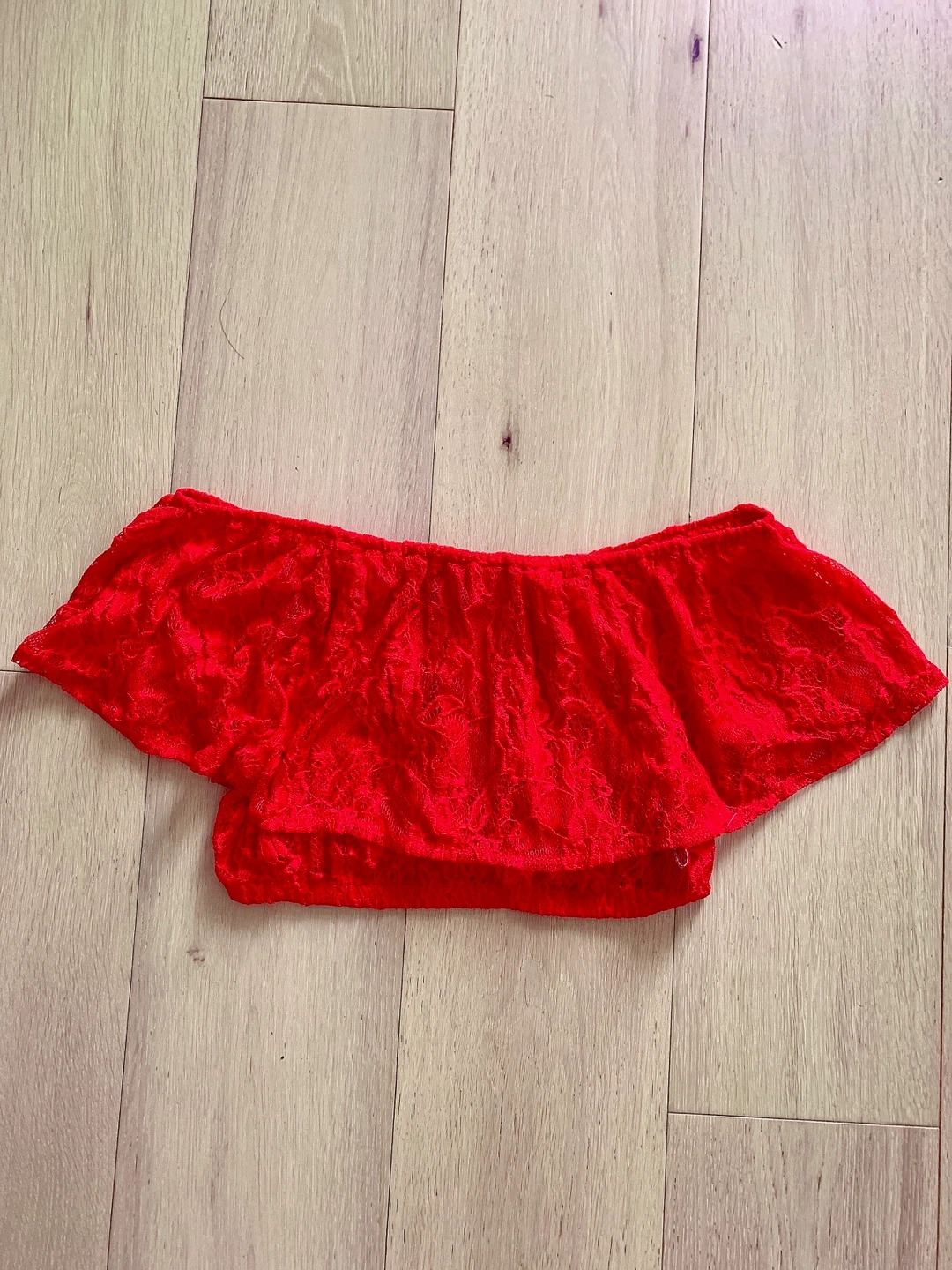 47Selling a cute Forever 21 red lace off-shoulder top in size small! It's made of 90% nylon and 10% spandex, so it has a bit of stretch for a comfortable fit. Perfect for adding a pop of colour to your wardrobe Brand New never worn size s Length: 23cm