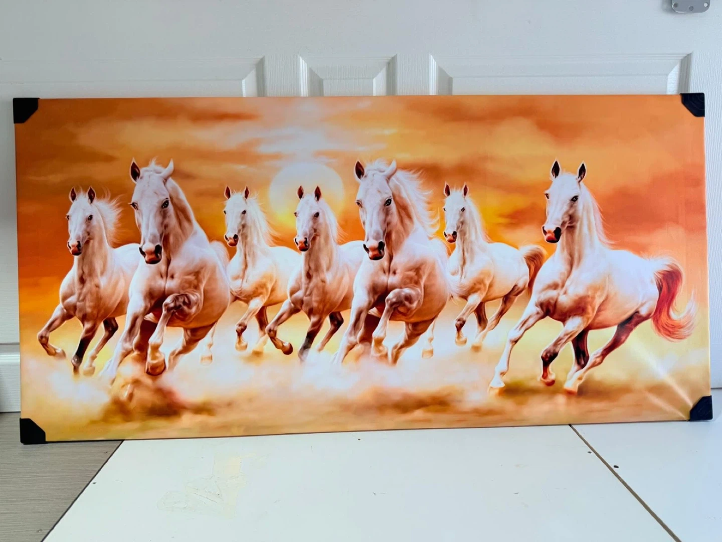 Brand New custom FRAMED PAINTINGS. Material: High Definition Print on Canvas hand stretched on wooden frame. Print is Waterproof and Fade-proof Frame: made of high quality Canadian wood with middle support Hanging - 2-3 hooks installed as per size. Vibrant colour & High quality canvas Perfect for gifting. Sizes & Prices: $90-$150 GOLDEN TEMPLE (55*25) PEACOCK (45*23) RADHA KRISHAN (47*31”) SHIVAJI ( 24*35”) $70 7 HORSES (55*27”) LOTUS Painting (55*27”) White/Beige flowers (55*27”) Golden modern abstract girl (47*31”) Pick up and drop off available in nearby locations. 647-773-3913