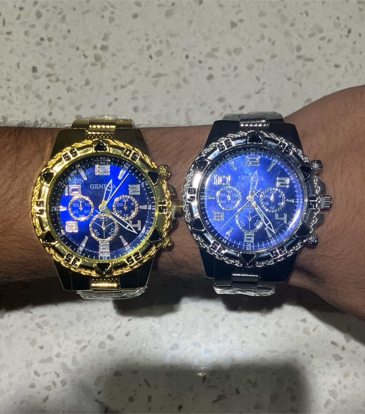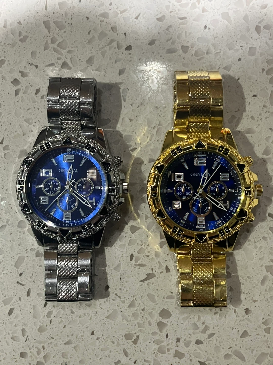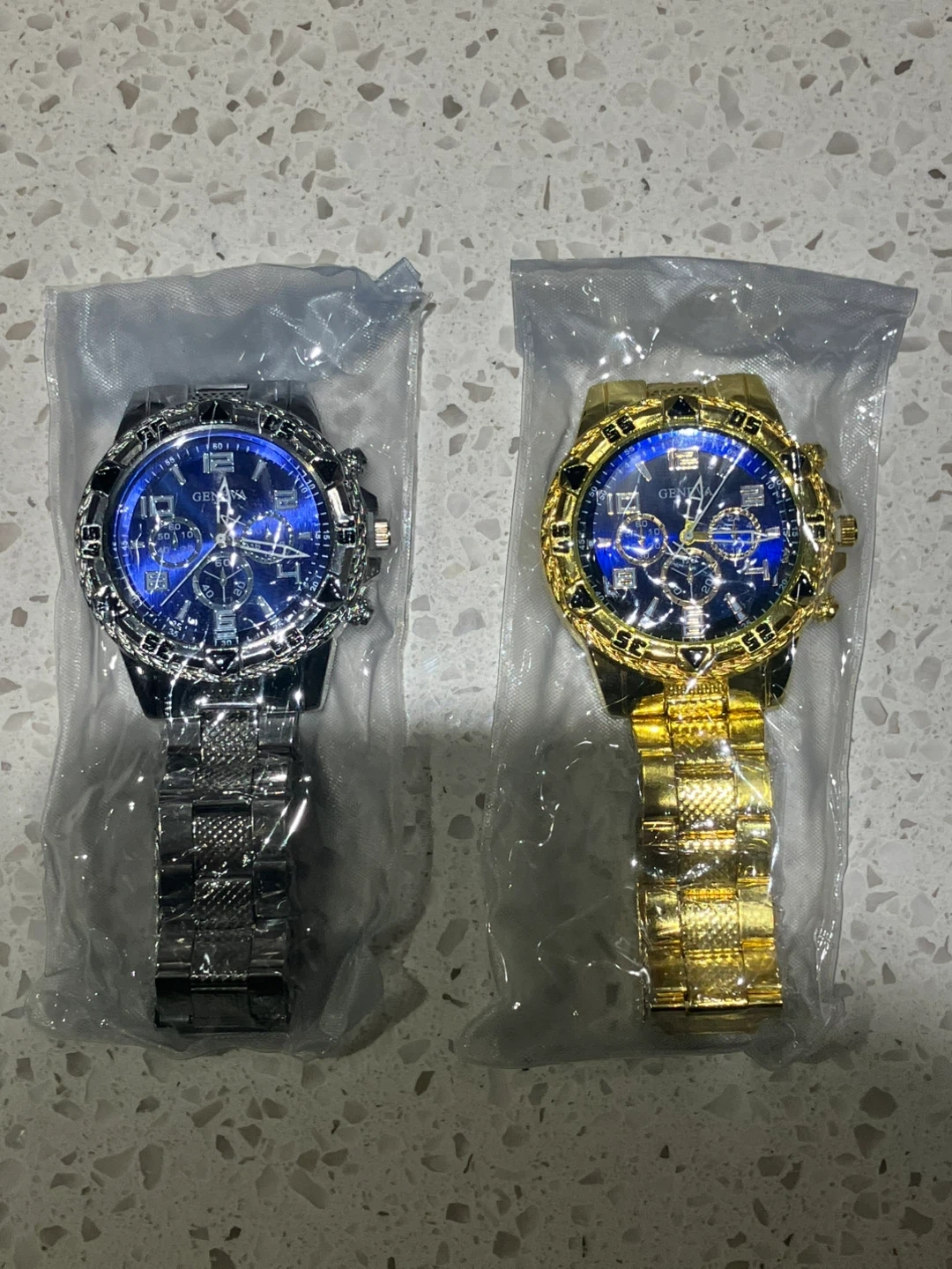 Selling two brand new Geneva men's watches! One is gold and the other is silver. Both still in their original packaging. Meetups only!๐ Buy now it is available! No refunds after purchase!