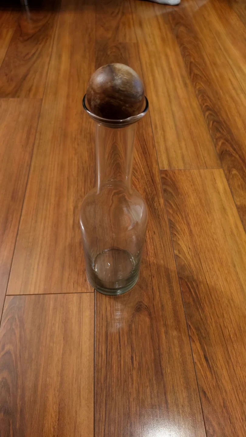 10Selling a glass carafe with a unique wood stopper. It's in great shape and would look lovely on any table!